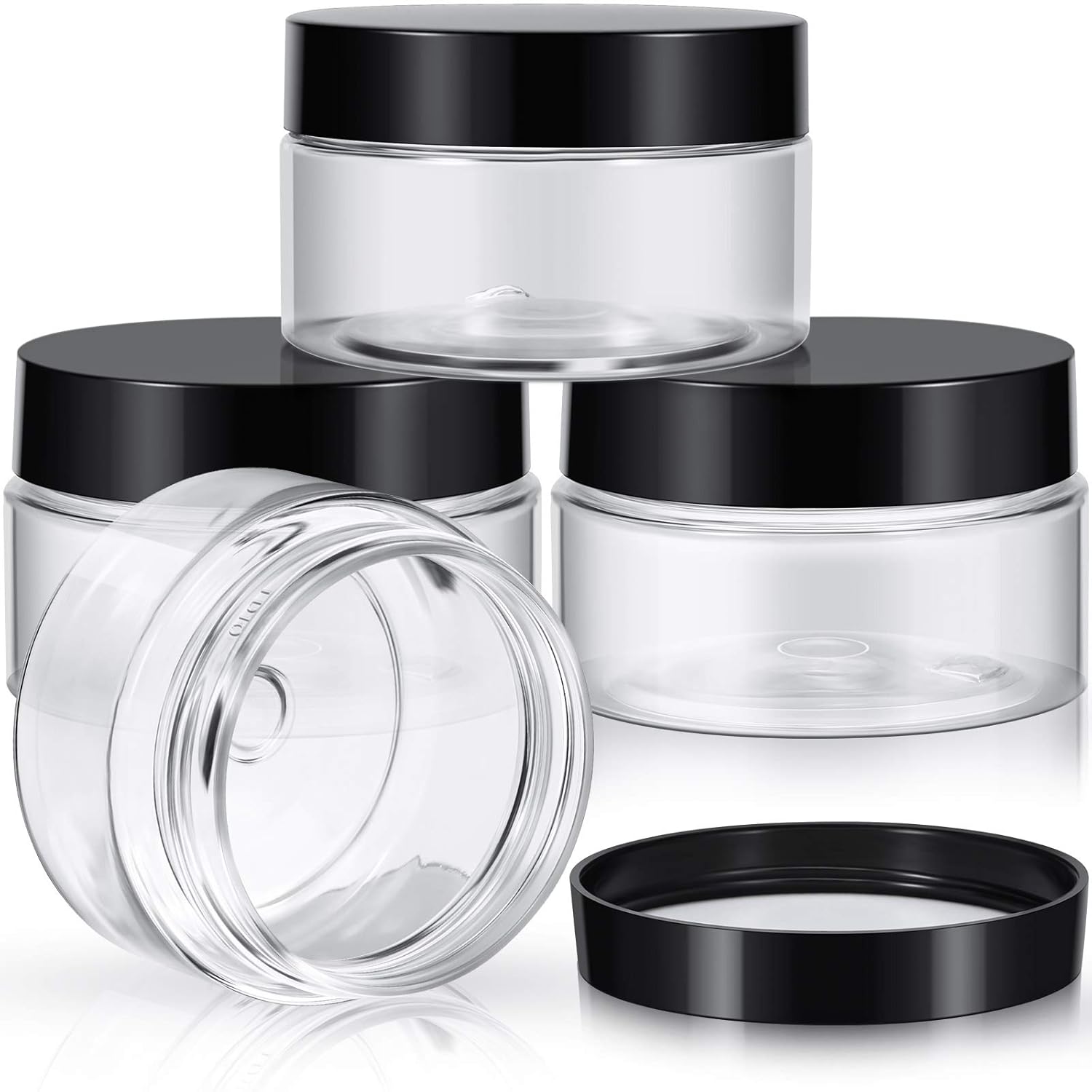 Patelai 4 Pieces Round Wide-mouth Leak Proof Plastic Container Jars with Lids for Travel Storage Makeup Beauty Products Face Creams Oils Salves Ointments DIY Making(4 Ounce,Black)