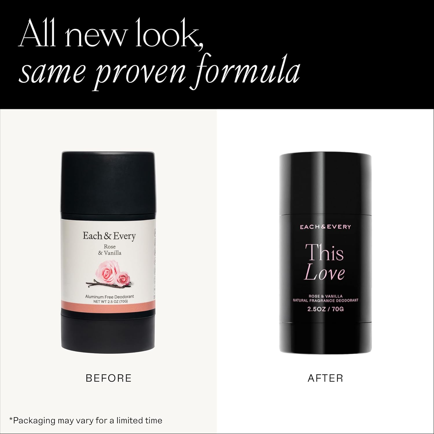 Each & Every Aluminum Free Deodorant for Women & Men, Rose & Vanilla - All Natural Deodorant for Sensitive Skin, EWG Verified - Clean, Baking Soda-Free, Plant-Based Fragrance - 2.5oz, 2 Pack