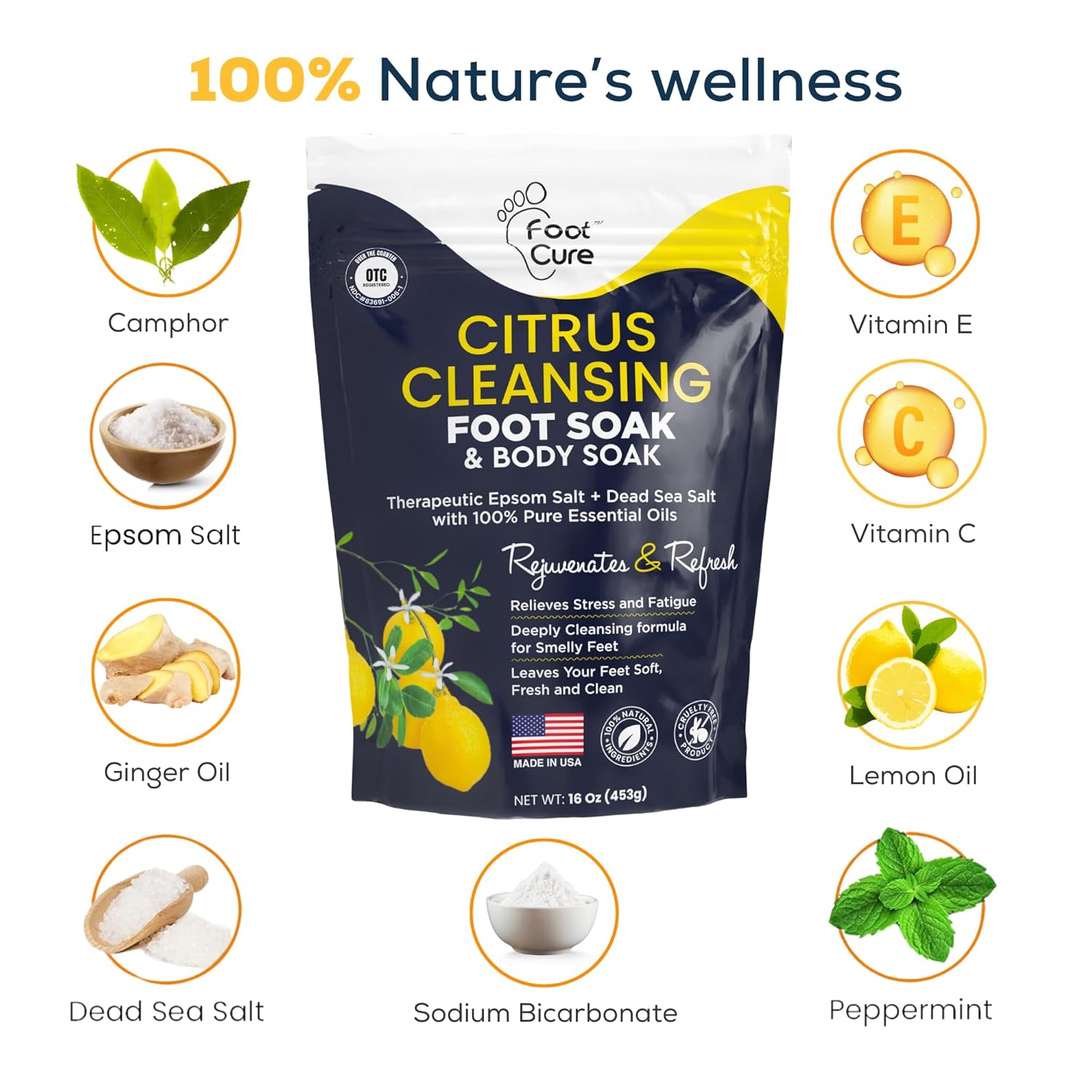 - FOR SOOTHED, MOISTURIZED, DEEPLY CLEANSED FEET: This moisturizing cleansing soak with Epsom salts helps refresh and rejuvenate tired feet for a more relaxed and well-rested feel. Plus, the deep cleansing action of citrus helps eliminate foot odor, soften calluses, and remove dead skin.