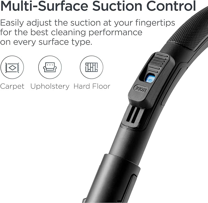 - Innovative Multi-Surface vacuum: Deep clean with the whirlwind canister vacuum. This vacuum features an integrated airflow control on the handle that can be easily switched at your fingertips. It includes three settings: carpet, upholstery and hard floors. Dust cup capacity - 2.5 liters. Voltage:120 volts. Wattage : 960 watts. Noise Level : 82 dBA