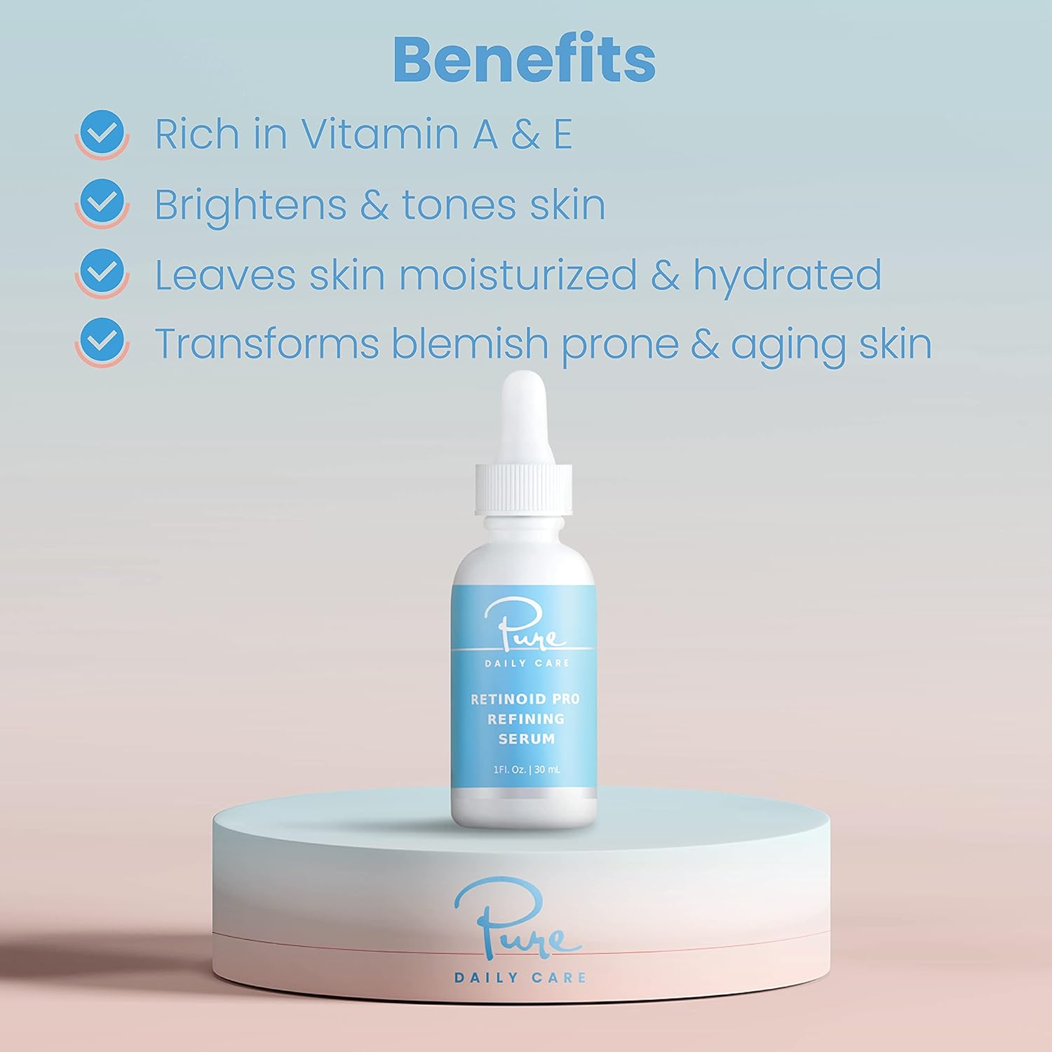 - What It Does: Retinoid Pro Refining Serum is formulated with unique forms of Vitamin A, Vitamin E & Vitamin C to deliver maximum benefits of a retinol serum without the irritation. It supports skin elasticity by providing a reduction in the appearance of fine lines, wrinkles and pores, all while delivering soothing properties and helping to defend skin against free radicals and environmental pollution. Hyaluronic Acid drenches skin in moisture to keep skin hydrated and plump.