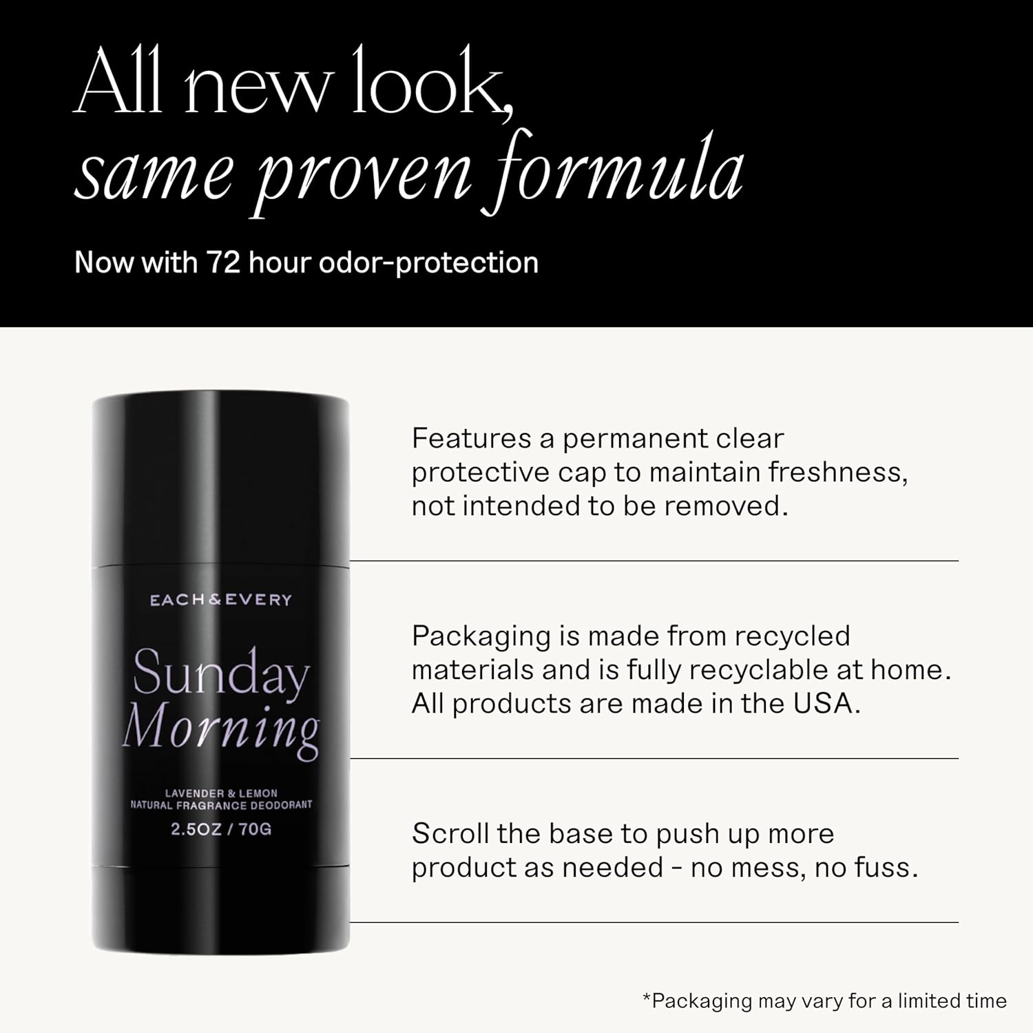 Each & Every Aluminum Free Deodorant for Women & Men, Lavender & Lemon + Rose & Vanilla - All Natural Deodorant for Sensitive Skin, EWG Verified - Clean, Baking Soda-Free, Plant-Based - 2.5oz, 2 Pack