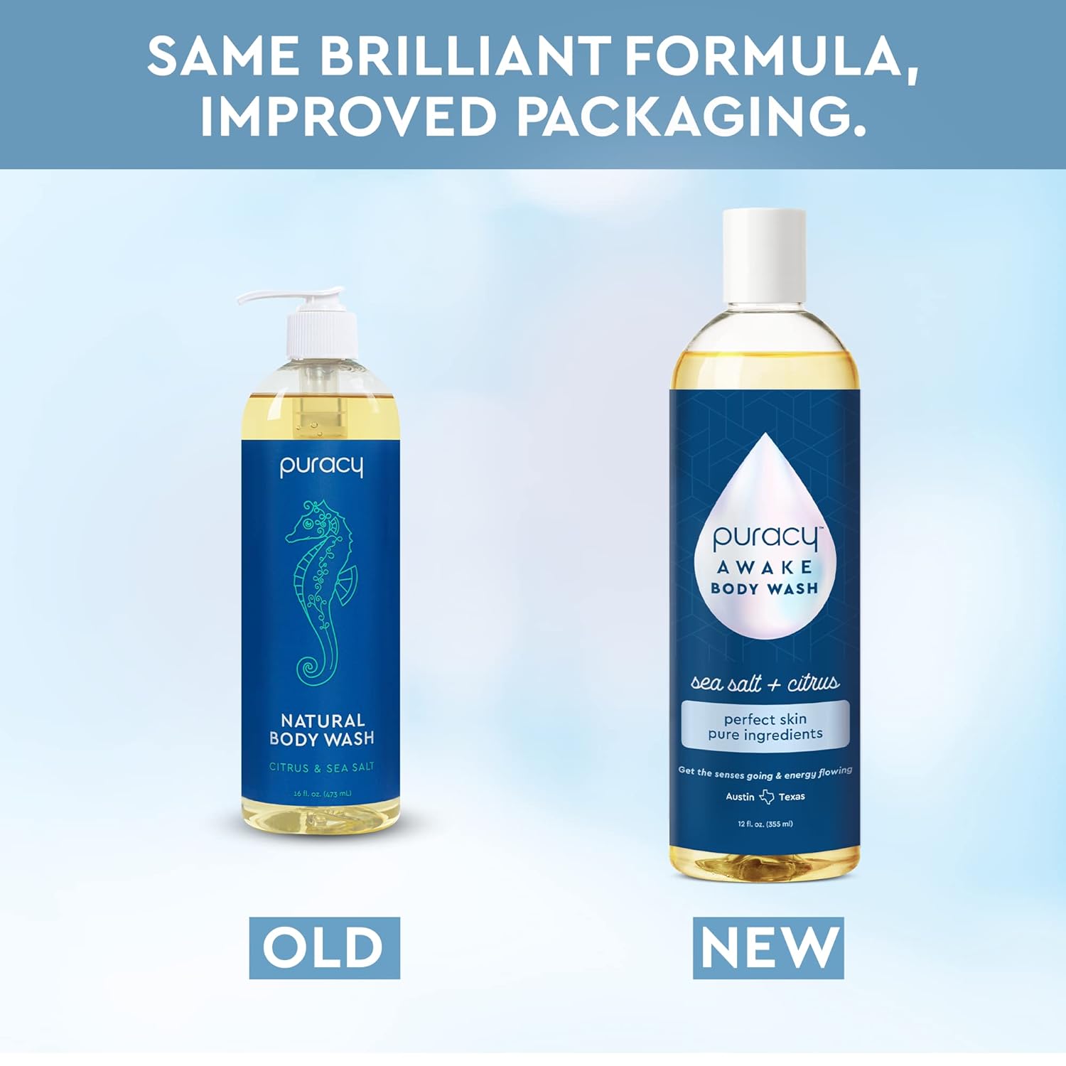 Puracy Body Wash, Natural Body Wash, 98.6% Pure Plant Ingredients, Moisturizing Shower Gel for Women Men Kids, Body Soap for Dry Sensitive Skin. Gently Scented with Citrus & Sea Salt, 12 Oz