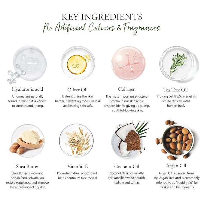 - SKIN-LOVING INGREDIENTS: All Rosa Acca products are made from skin-loving ingredients you want. Rich in Tea tree essential oils & coconut oils, Collagen, Shea Butter, Argan Oil and Hyaluronic Acid. it can effectively cleanse and moisturize your skin, Whether you have dry, oily or sensitive skin, our skincare set is suitable for all skin types. Gentle yet effective, it’s designed to help balance your skin’s moisture