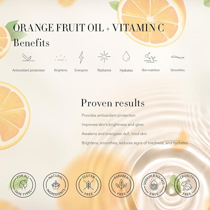 - 【Moisturizing Ingredients】Made only with high-quality gentle ingredients and riched in Orange essential oils, shea butter, argan oil, coconut oil and hyaluronic acid, it can effectively cleanse and moisturize your skin