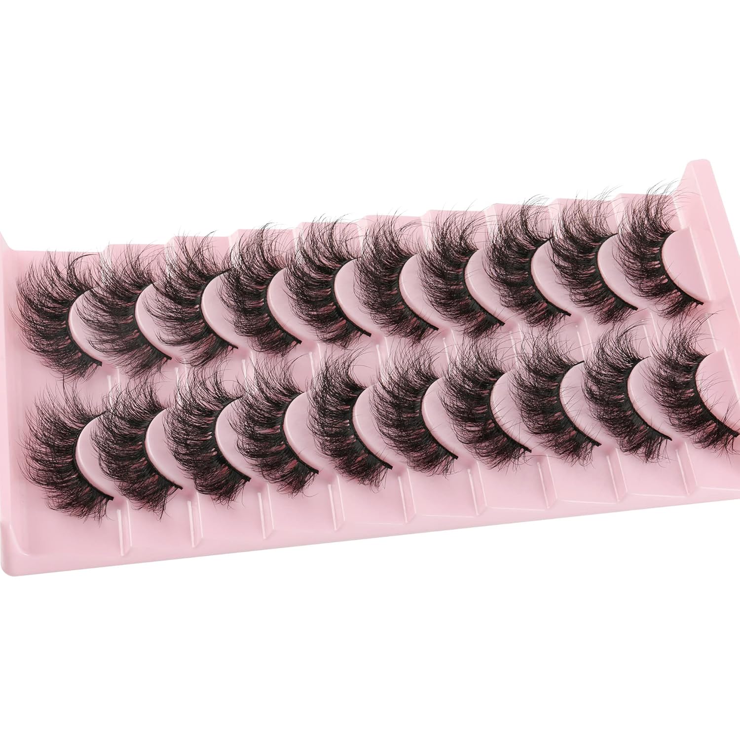 FANXITON Mink Lashes False Eyelashes Dramatic Full Mink Lashes Wispy 19 MM Natural Look 3D Fake Eyelashes 10 Pairs Pack
