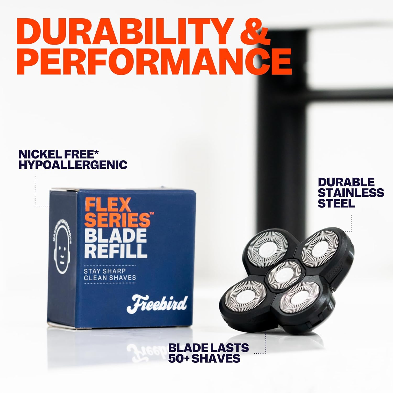 Freebird FlexSeries Official Blade 1 Pack Refills - No Irritation, Razor Bumps or Ingrown Hairs, Ultra-Sharp, Durable, ScalpSafe Design, QuickSnap Install, for 50 Shaves, Compatible with FlexSeries