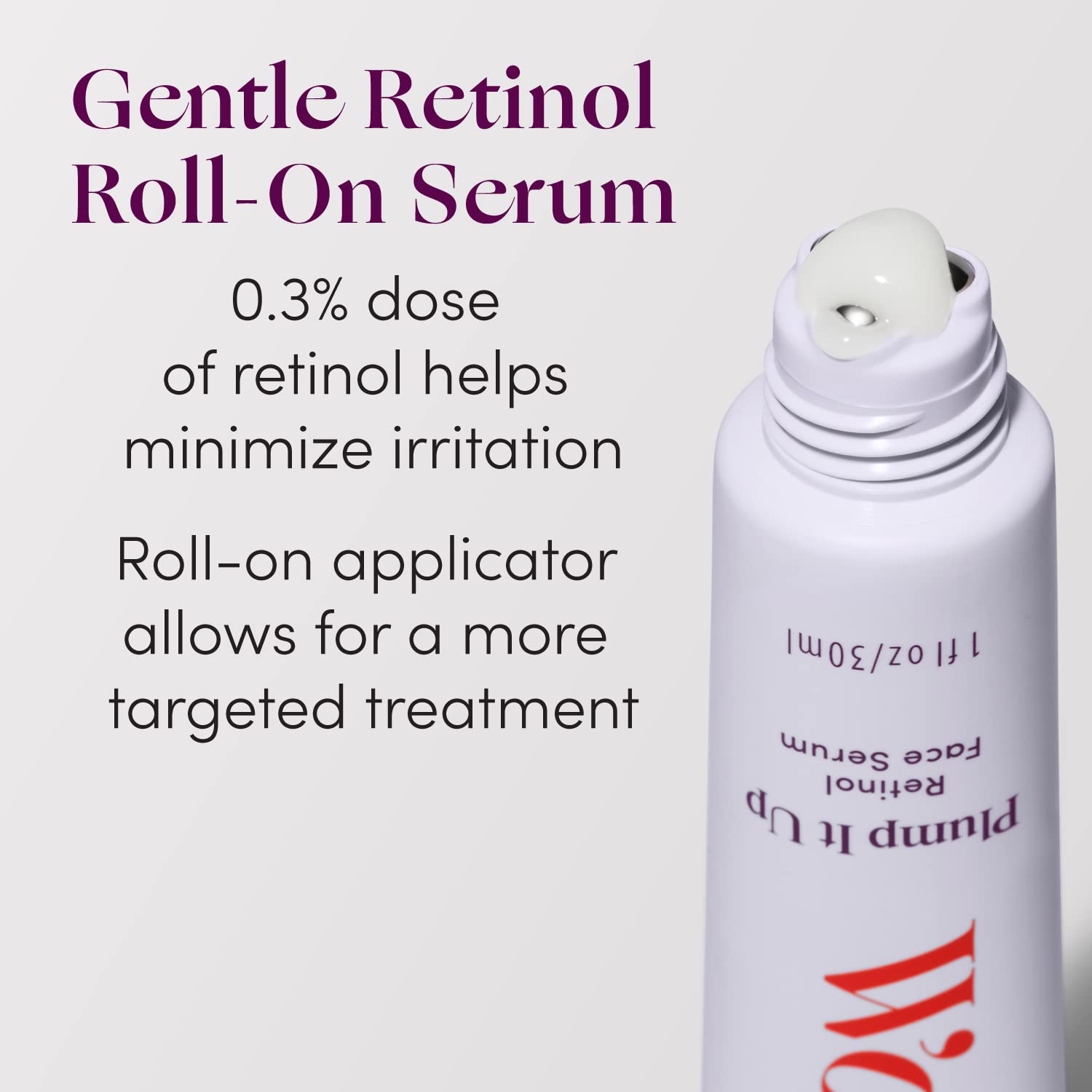 Womaness Plump It Up Retinol Serum – Roll-On Hydrating Face Serum for Women w/ Hyaluronic Acid & Collagen Boosting Retinol – Anti Aging for Fine Lines, Wrinkles & Smoothing Ceramide NG Skincare (30ml)