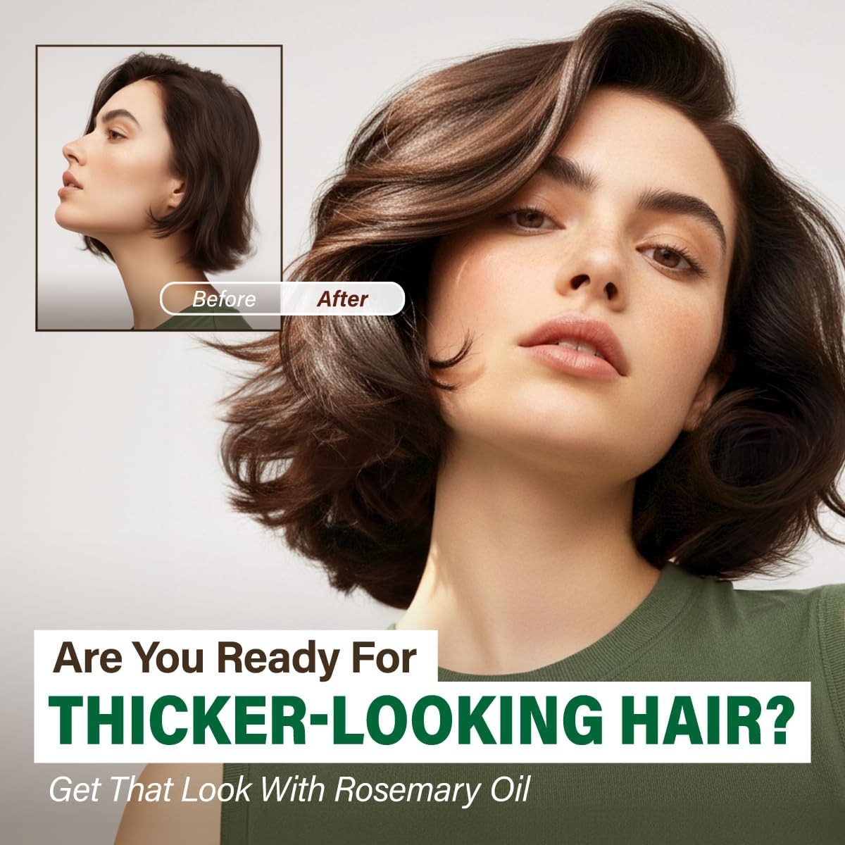 - For fuller-looking hair. Rosemary oil for hair or aceite de romero para el cabello is the perfect addition to daily hair rituals for hair nourishment. Add 1-2 drops of rosemary essential oil into hair care routines.