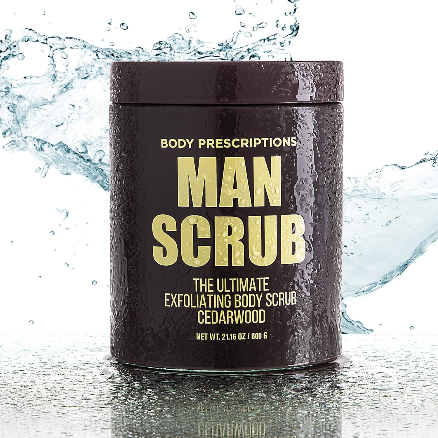 - RELAX + REFRESH: Delight your senses and relax at home with this 21.06 oz ultimate exfoliating body scrub from body prescriptions. The “Man Scrub” comes in a large jar with an easy-to-use twist off top.