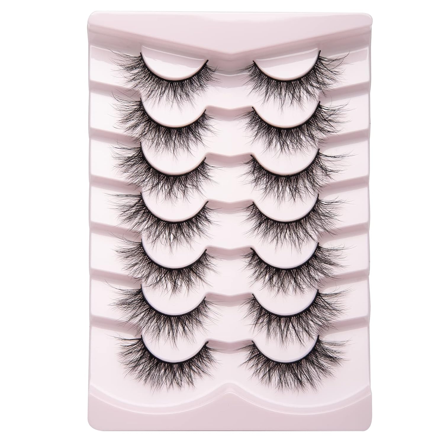 Fake Lashes Natural Wispy Lashes Airy Volume Faux Mink Lashes Fluffy Long False Eye Lashes Sets Pack 18MM Reusable Eyelashes A05