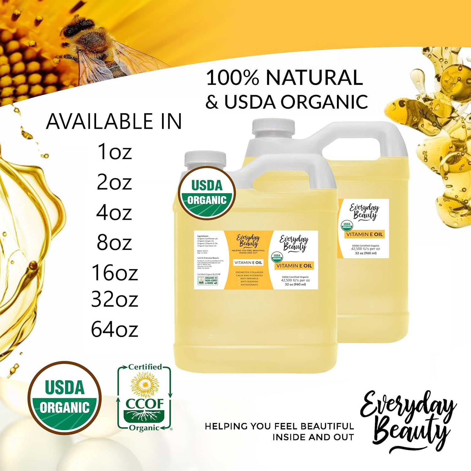 Organic Vitamin E Oil - 64 oz Bulk USDA Certified 100% All Natural & Plant Based - Light and Unscented Great for Scars After Surgery - For Face, Skin, Hair and Nails - Anti-Wrinkle, Anti-Aging