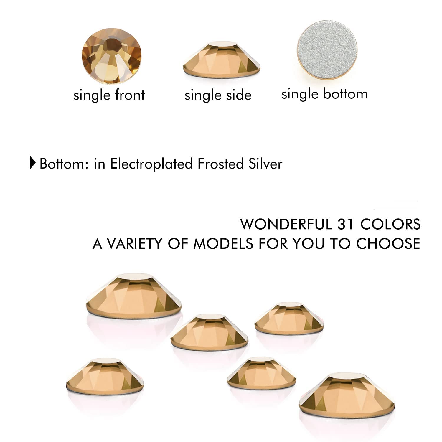 - Different Sizes Available:These rhinestones for crafts come in a wide range of sizes (1.6mm, 2mm, 2.4mm, 2.8mm, 3mm, 4mm, 4.8mm) to suit your different needs