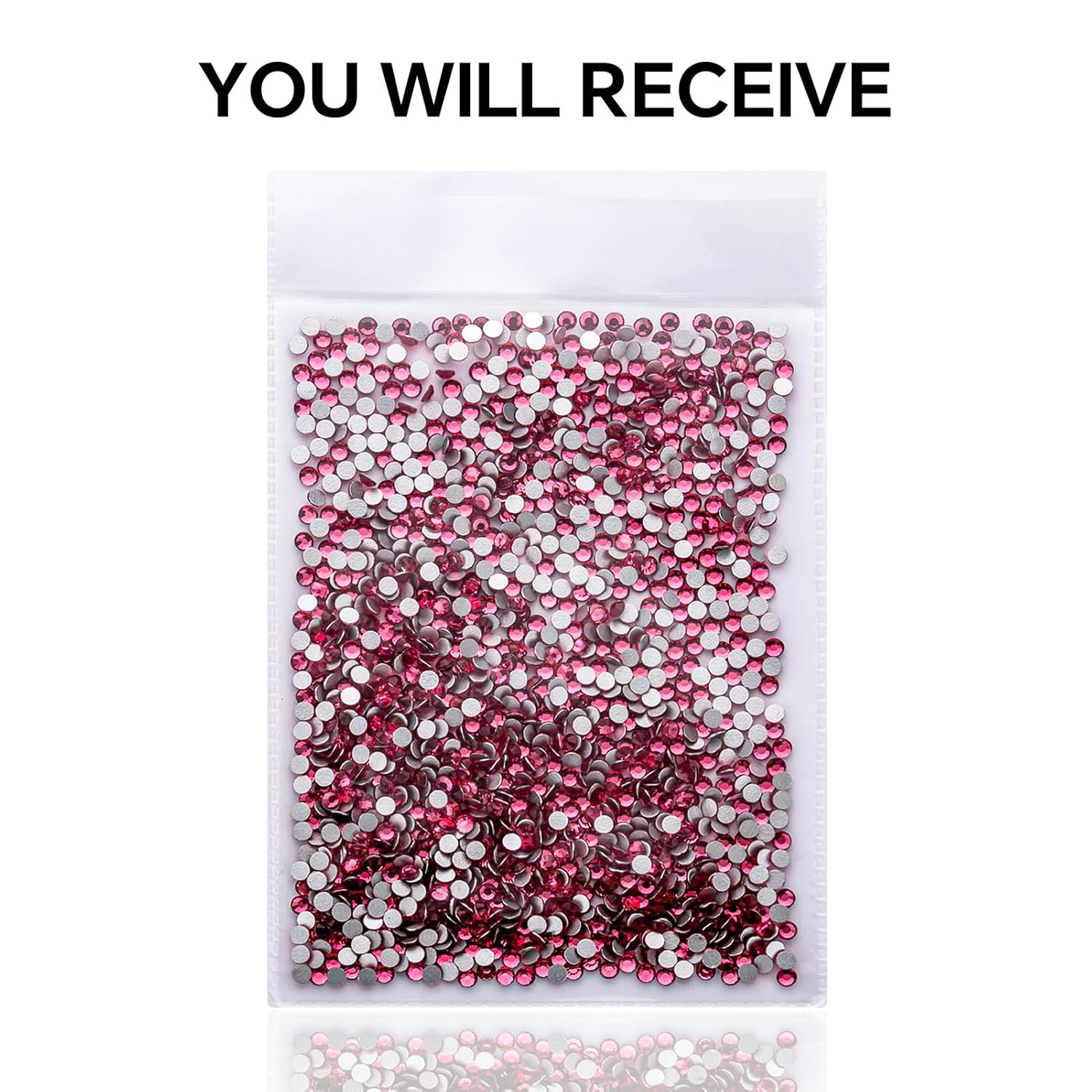 1440Pcs Rose Crystal Rhinestones,Glass Flatback Rhinestones Gemstones Small for Nail Face Makeup Art Crafts Clothes Decoration -(SS8,2.4mm,Rose)