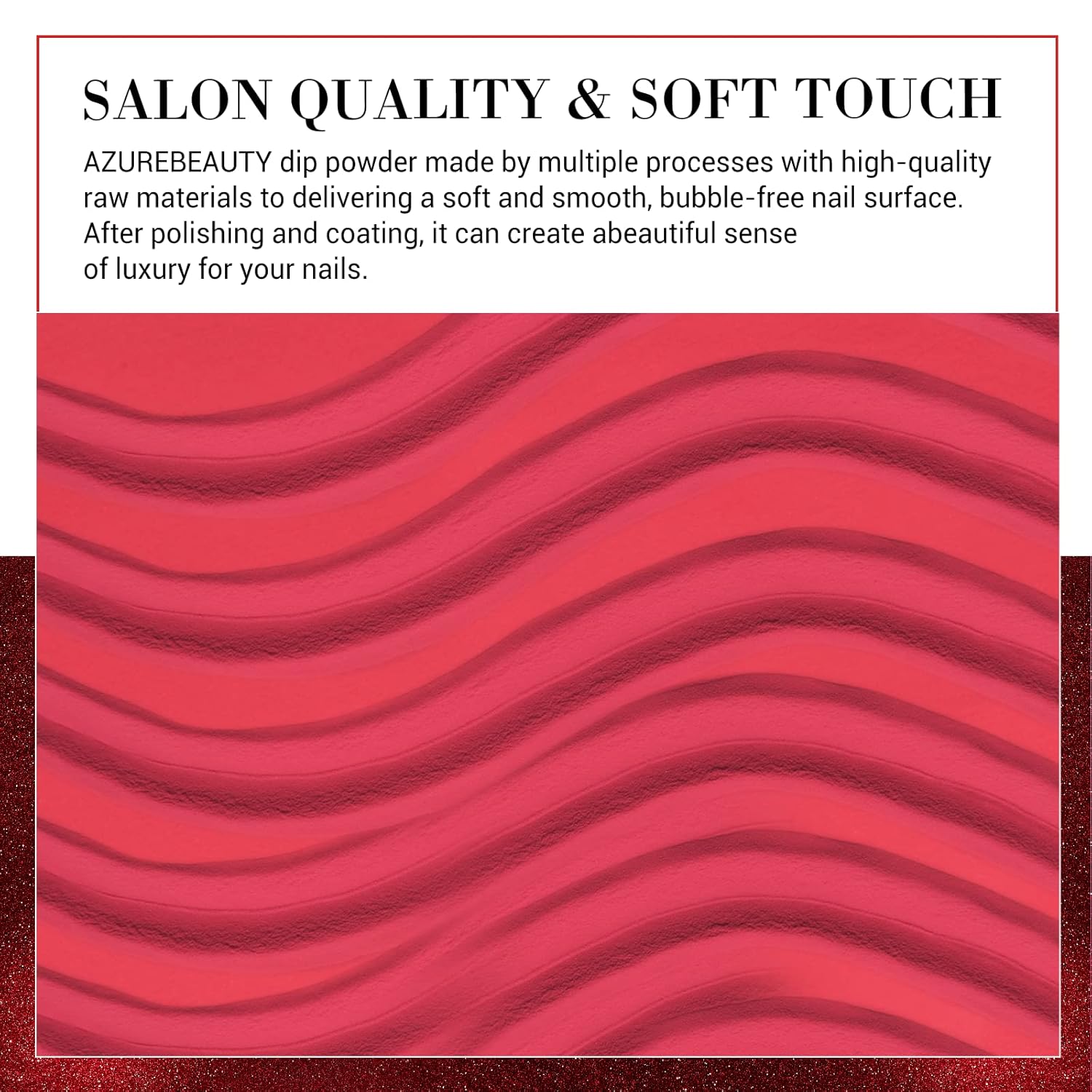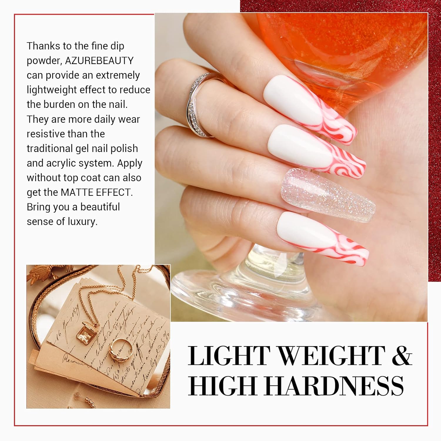 - Superior Quality & Long Lasting: AZUREBEAUTY dip powder nail kit is long-lasting and anti-chipping, anti-peel off. The color is full and natural-looking, light, and has an impeccable shine finish. It can keep the nail art gorgeous and shiny for more than about 28 days with proper application