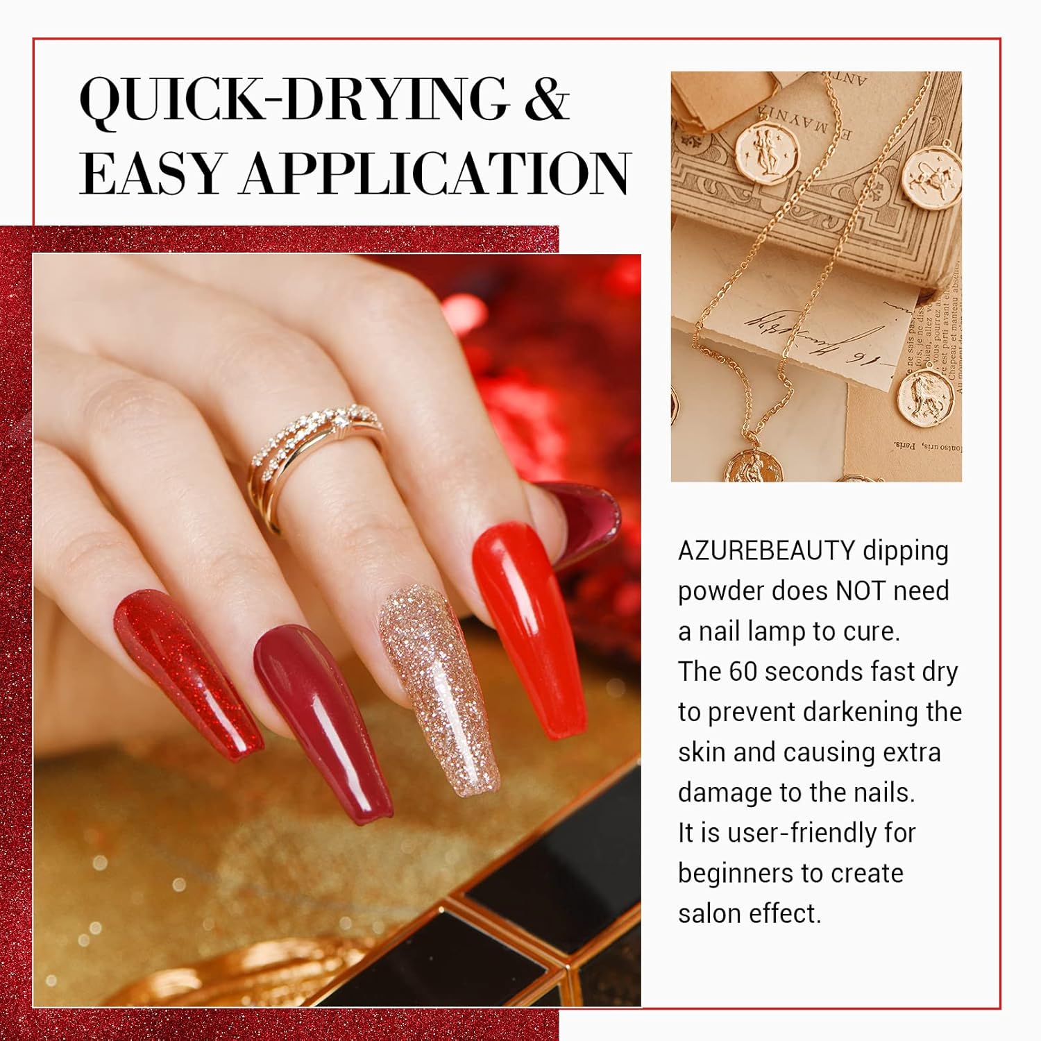 - No Need Nail Lamp Curing & Easy Application: AZUREBEAUTY dip powder nail starter kit doesn't need a nail lamp to cure, and dry faster and is skin-friendly, which can avoid turning skin black and damaging nails. Easy to apply, suitable for beginners and professional nail salons