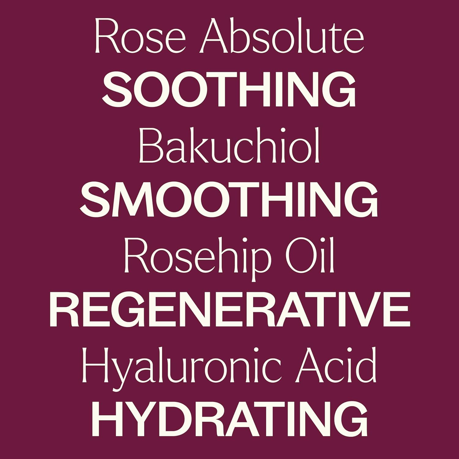 - BEST INGREDIENTS: Rose Absolute soothes & softens skin for a rejuvenated look. Rosehip Seed Oil is healing, regenerative, hydrating & softening. Bakuchiol smooths the appearance of fine lines & supports elasticity and an even skin tone. Hyaluronic Acid hydrates thirsty skin to help soften fine lines & wrinkles
