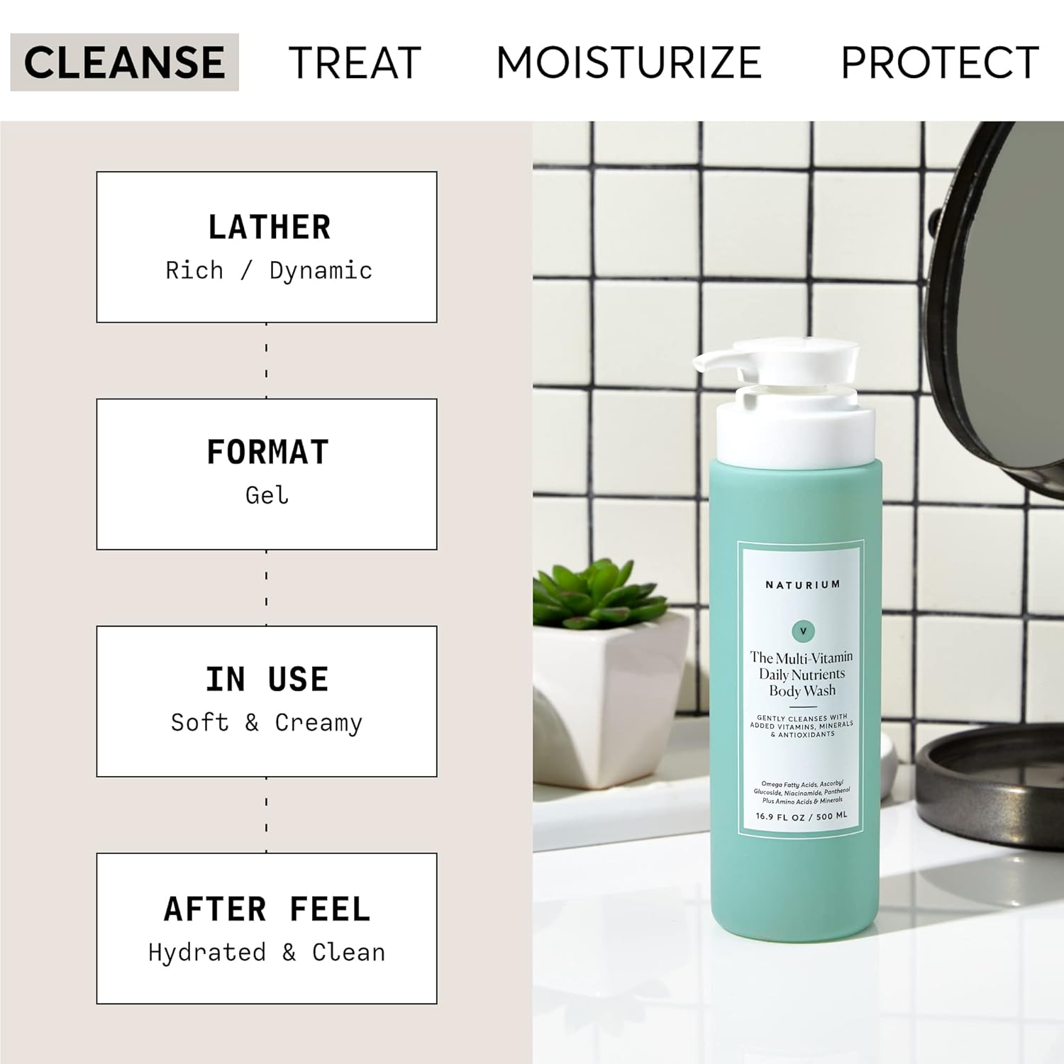 - EVERYDAY WASH: Our daily multi-vitamin body wash is formulated to remove dirt, oil and other impurities, while hydrating and replenishing essential nutrients