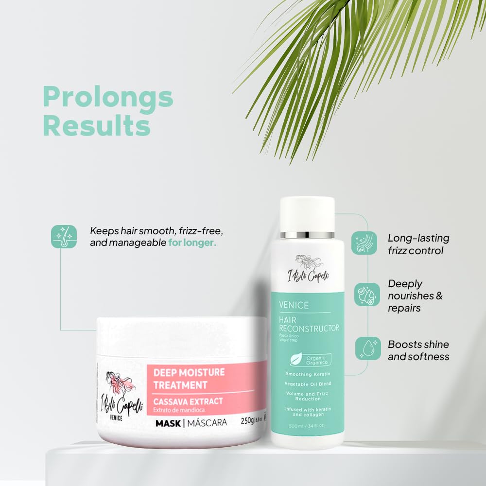 Venice Smoothing Keratin Kit - Brazilian Hair Straightening Treatment for Silky Soft Hair (250g), Pack of 2