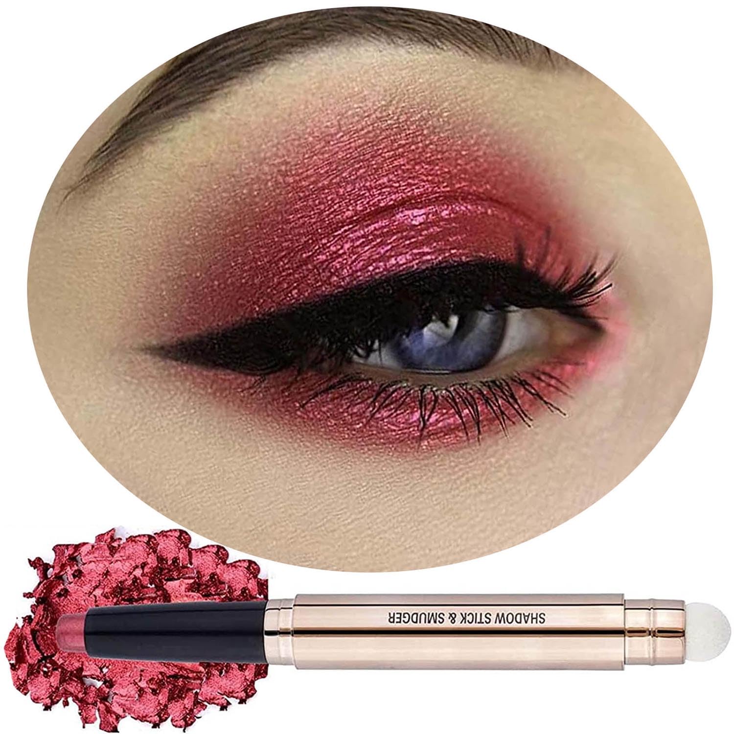 Rose Red Shimmer Eyeshadow Stick Makeup, Smooth Cream shimmer Glitter Eyeshadow Pencil Long Lasting Waterproof Eye Shadow Highlighter Makeup, Hypoallerge(Light rose red shimmer 06)