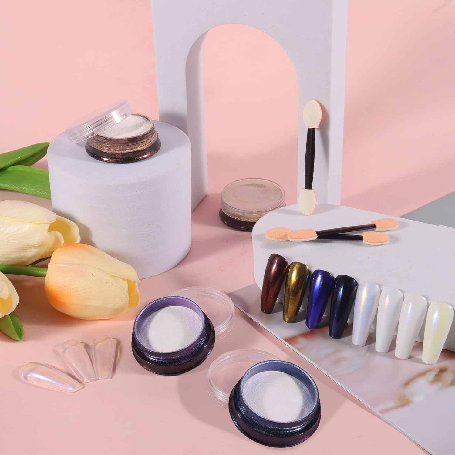 - Wide Usage: The chrome powder for nails set has aurora nail glitter of 4 colors, meeting your needs for different colors for different works. The colorful nail powder can be applied on UV gel nails, acrylic nails, natural nails, and it can be mixed into nail gel polish for its solvent resistance. It is a multifunctional DIY dye for decorating your home decor, cell phone's case, glasses, resin cfrafts, and more.