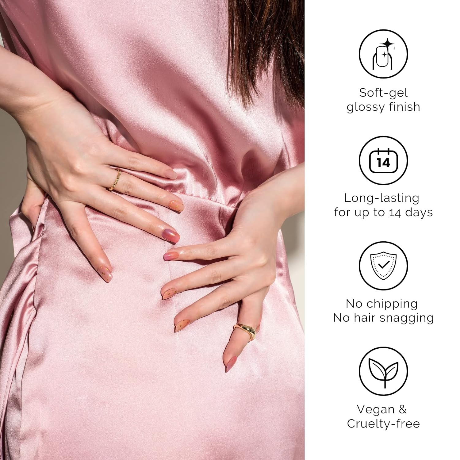 - 【SALON QULITY】 Made of real nail polish 60% precured, soft to fit all nail shapes - Nailog semi-cured strips with waterproof top gel last up to 2 weeks once cured with a UV lamp. - Our gel nails are also extremely lightweight so they do feel like your own nails!