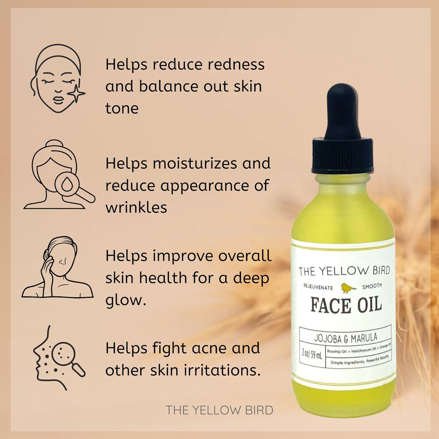 Yellow Bird Nourishing Face Oil - All Natural Hydrating, Anti Aging Facial Serum. Includes Jojoba, Marula, Primrose, & Rosehip for Restoring Skin