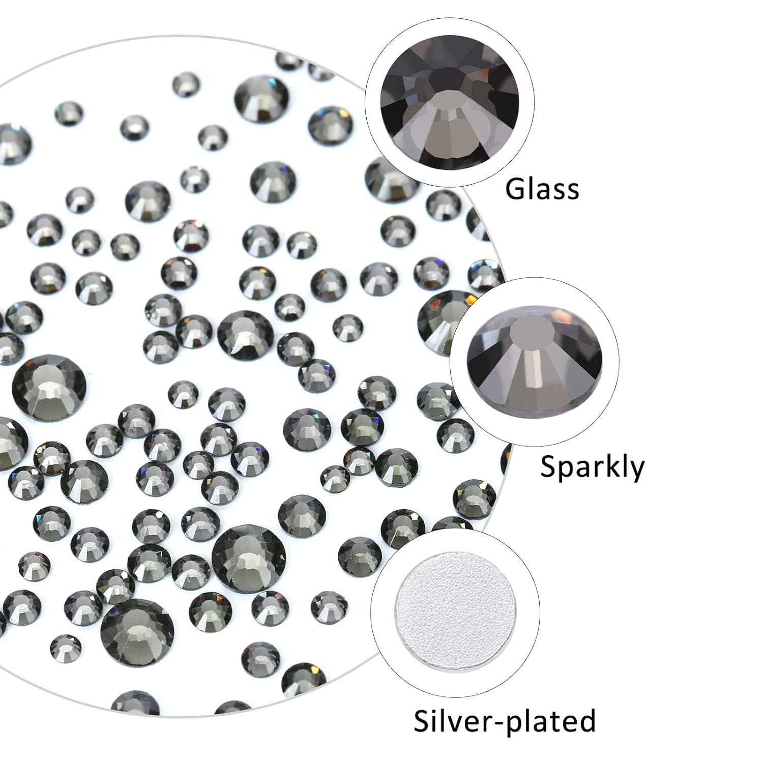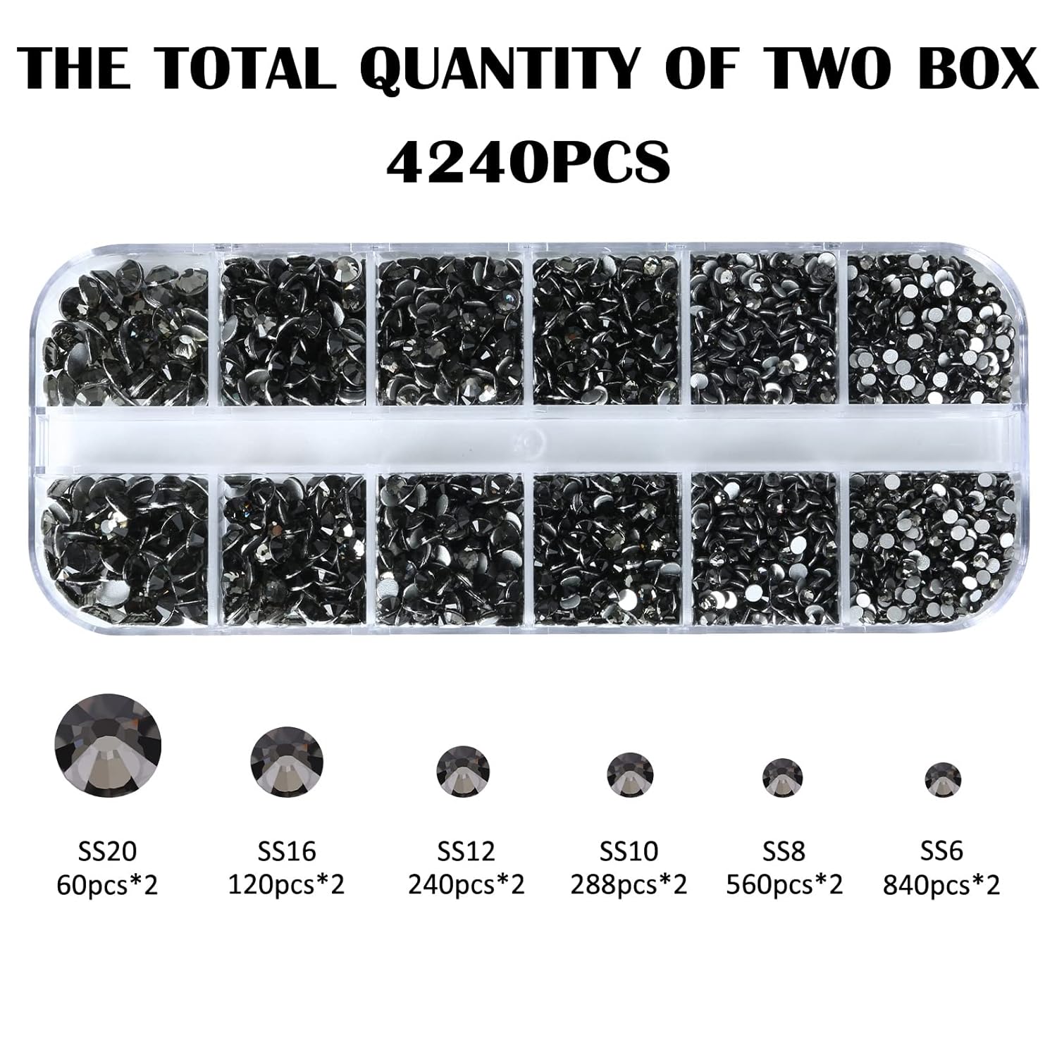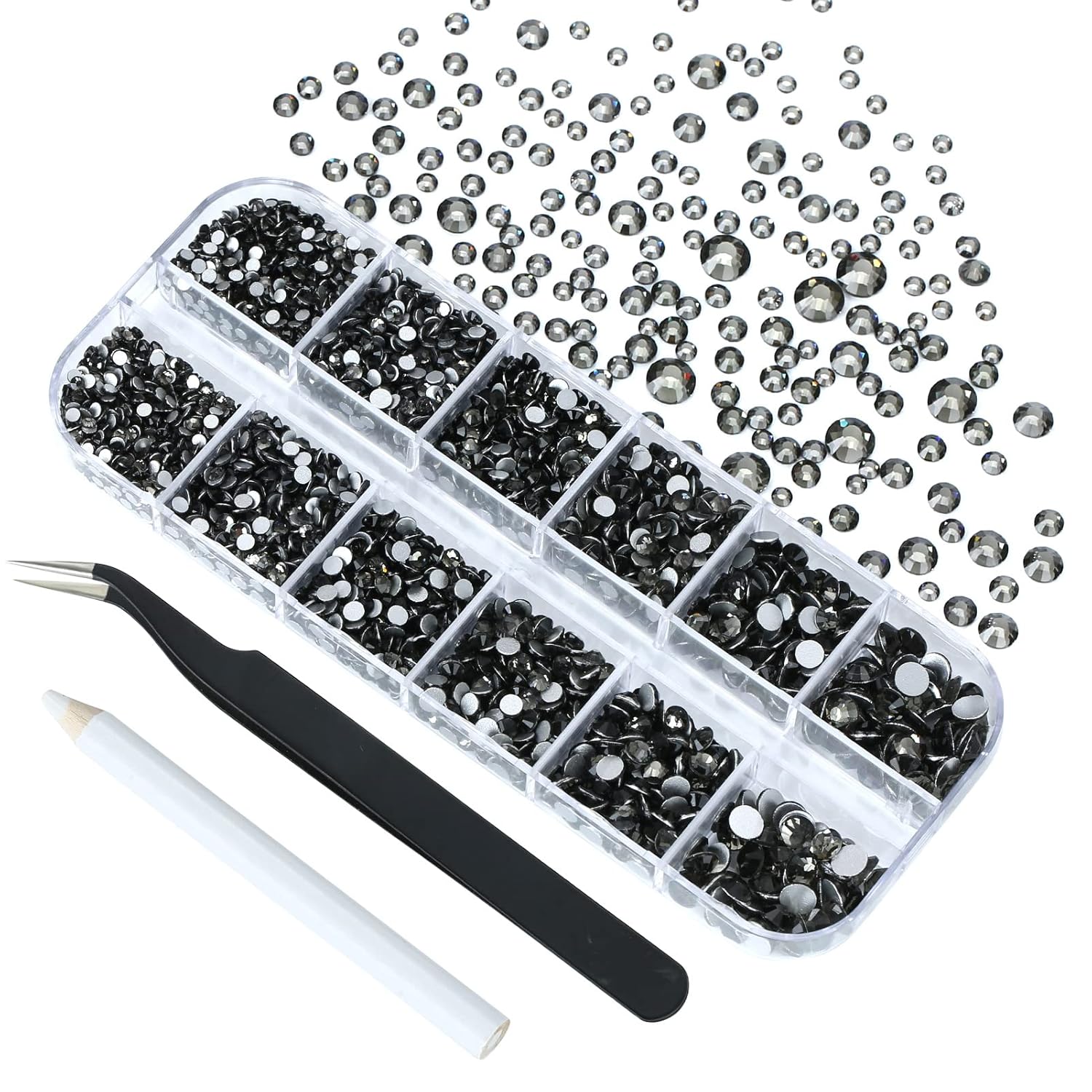 4240Pcs Black Diamond Flatback Rhinestones 6 Sizes Crystal Diamonds for Nail Art Crafts Clothes Shoes with Tweezers and Picking Pen