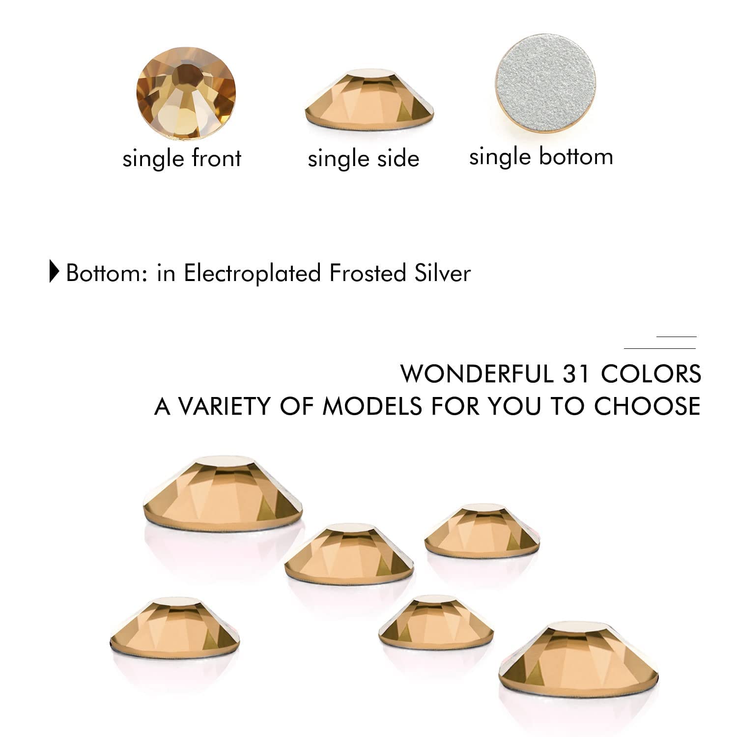 - Different Sizes Available:These rhinestones for crafts come in a wide range of sizes (1.6mm, 2mm, 2.4mm, 2.8mm, 3mm, 4mm, 4.8mm) to suit your different needs