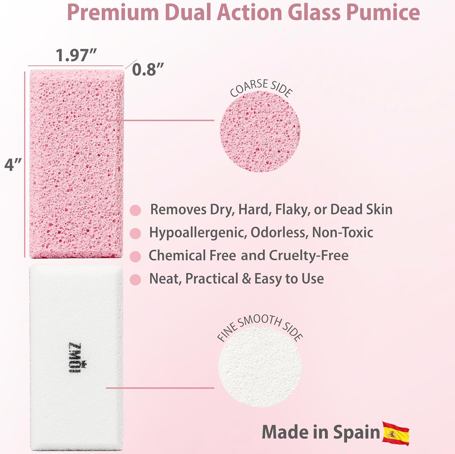 Glass Pumice Stone Callus Remover for Feet, Elbows, Hands, and Knees, Spain Made - 2 in 1 Pedicure Exfoliator and Scrubber for Rough, Hard Skin (Pink Color)