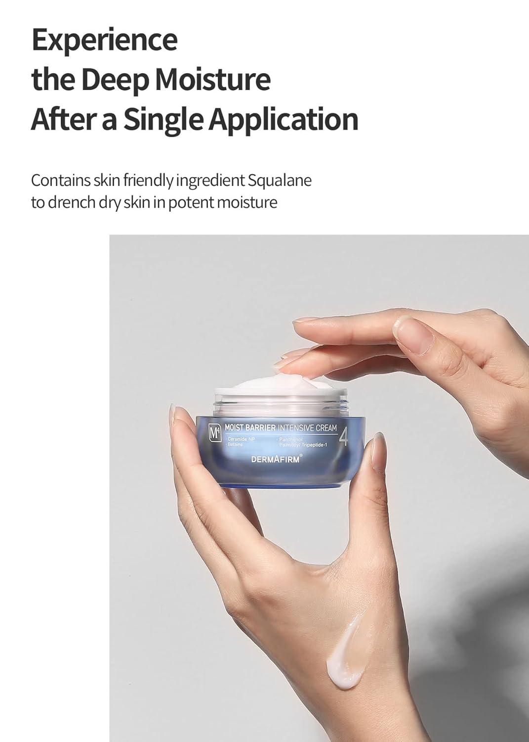 - HYDRATE WITHOUT THE WEIGHT. DERMAFIRM Moist Barrier Intensive Ceramide Moisturizer Facial Cream M4 delivers a highly concentrated blend of natural botanical extracts, eliminating the discomfort of heavy moisturizers. Its gentle and light formula hydrates the skin, providing a soothing sensation of moisture without the greasiness.