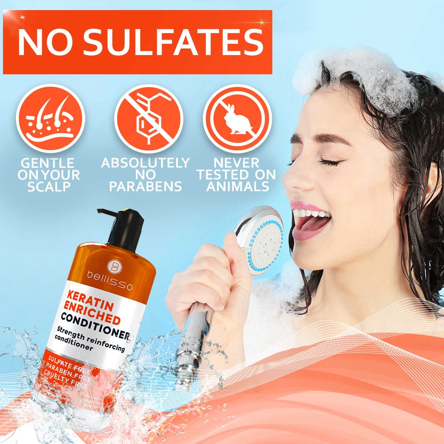 - AMAZING SHINE: The secret to how our hair care products for women and men create dazzling shine is the way that the keratin binds to each strand. The keratin in Bellisso’s deep hair conditioner actively works to smooth flyaways and frizz, leaving you with Hollywood style hair that turns heads