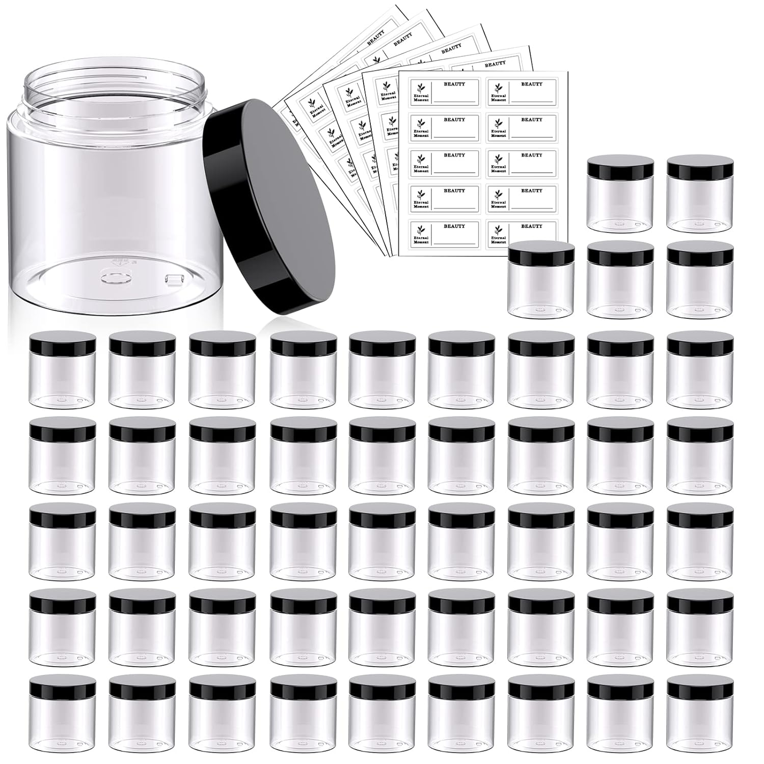 - ★【SUPER VALUE PACK】: You will get 50 clear 2oz plastic containers with black lids, 50 labels for distinction and 5 spatulas for dispensing or mixing, used for anything you want to store. Personalized stickers/labels are ideal for business and promotional goods.