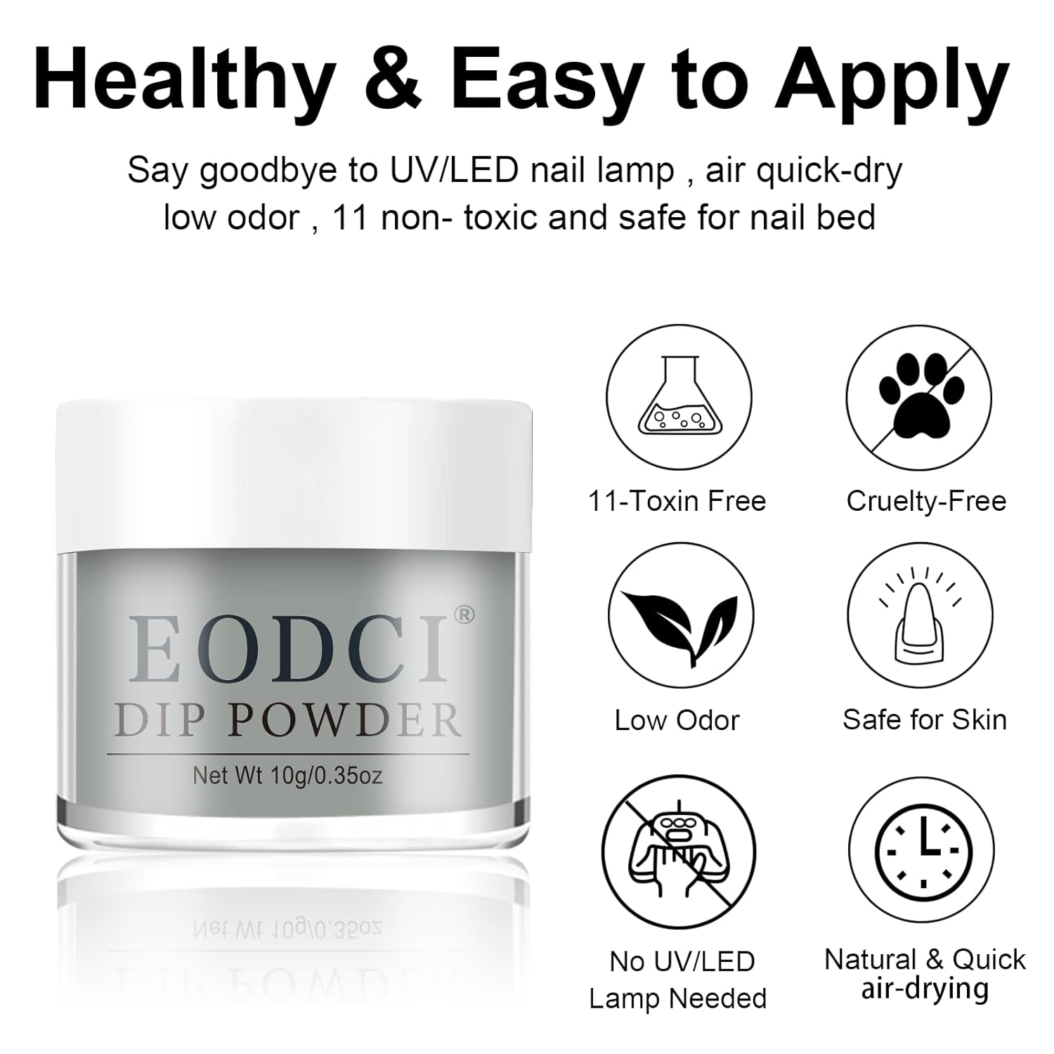 - 【No Lamp Needed】Eodci Nail Dipping Powder does not require UV/LED light to cure, is skin friendly while avoiding skin darkening and damage, safe and easy to use, suitable for beginners and professional nail salons.