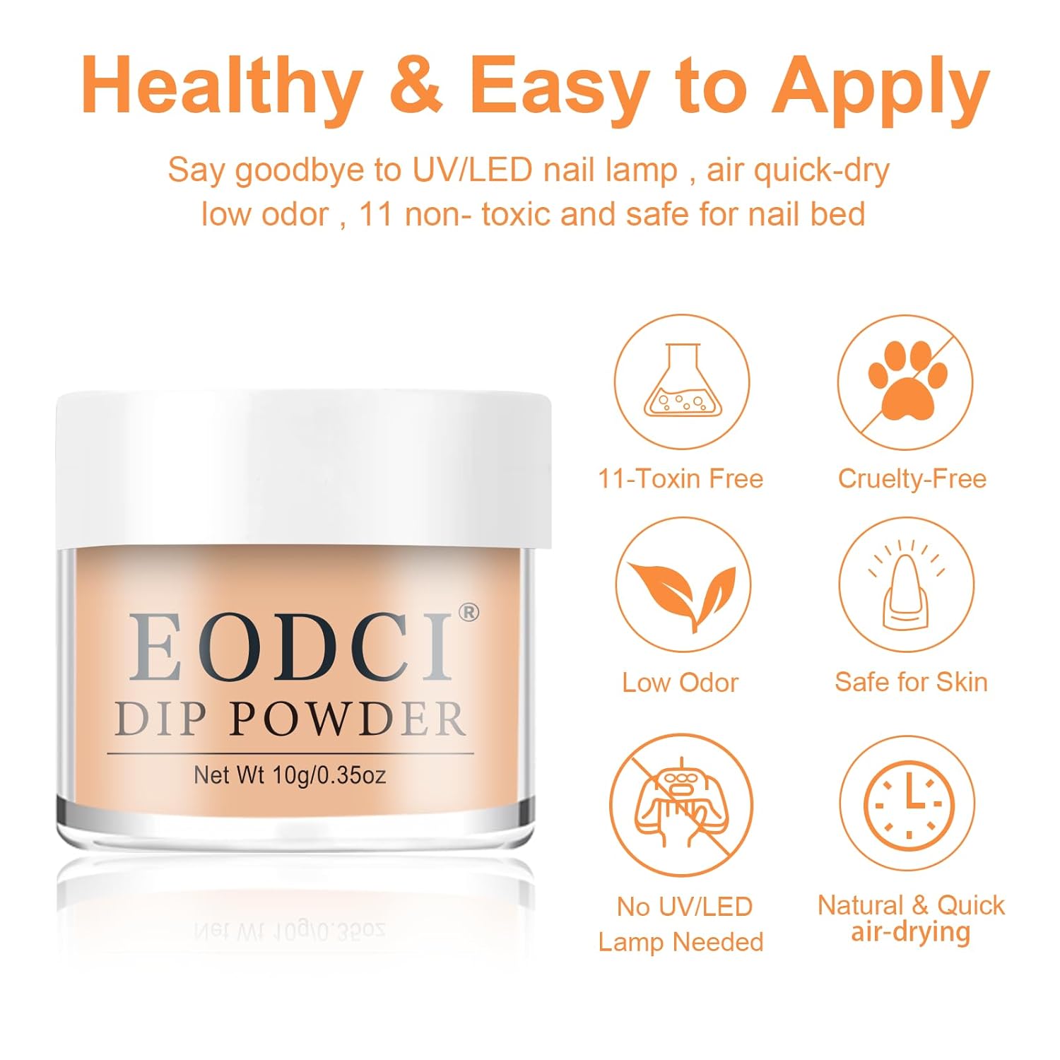 - 【No Lamp Needed】Eodci Nail Dipping Powder does not require UV/LED light to cure, is skin friendly while avoiding skin darkening and damage, safe and easy to use, suitable for beginners and professional nail salons.