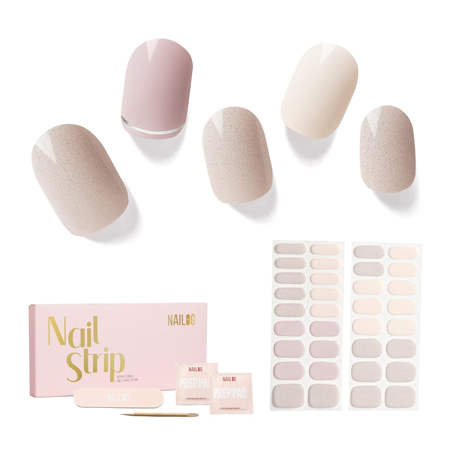 NAILOG Semi Cured Gel Nail Strips, 34 pcs Salon-Quality Gel Nail Stickers, Long Lasting Nail Wraps for Women with Soft Gel Finish | Isabelle