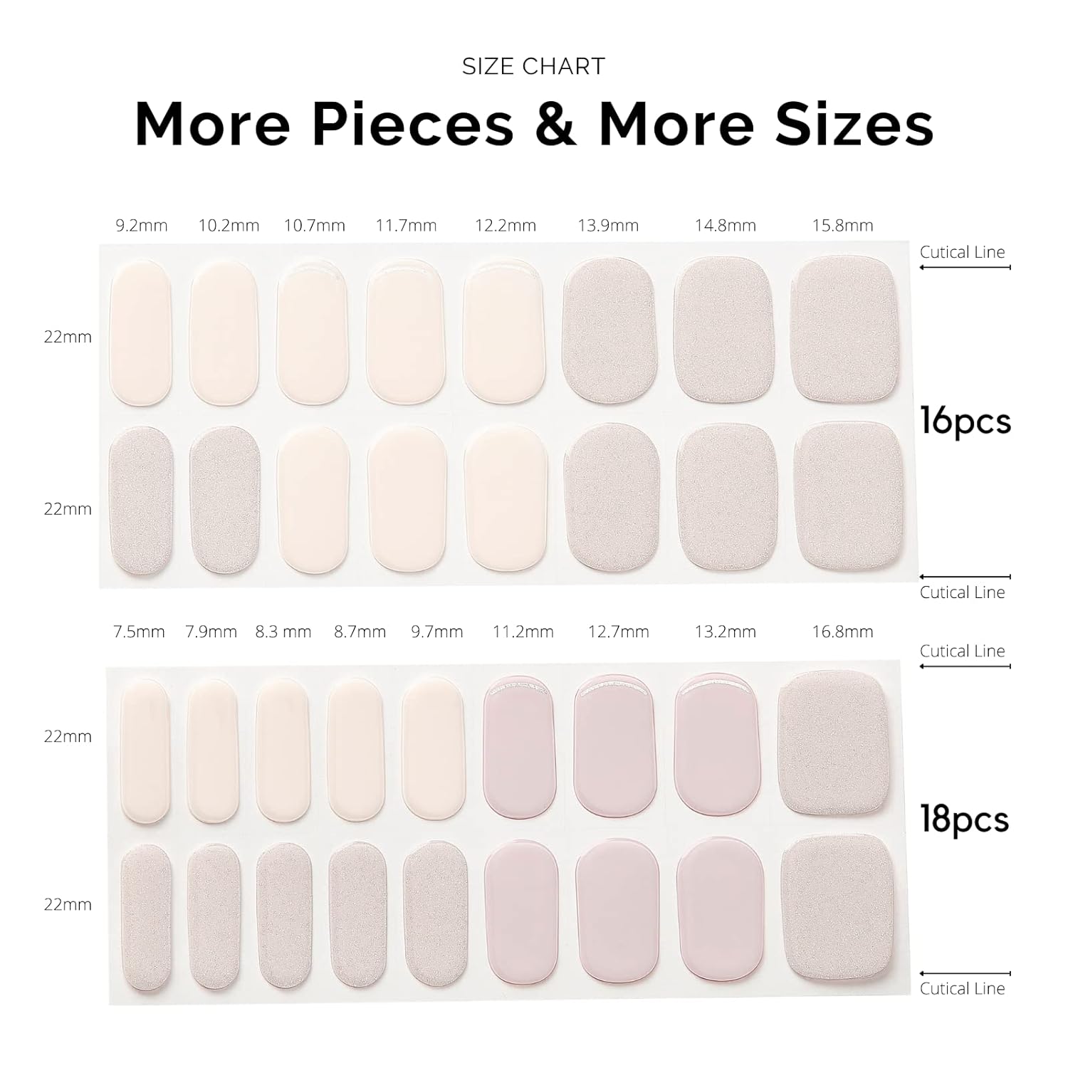 - 【34 PCS NAIL STRIPS】More Quantity & Sizes than Ever! - With 17 different sizes of our nail art stickers, you can easily find the right size to match your nails. - New curved side line fits even better with your nail shape for seamless adhesion.