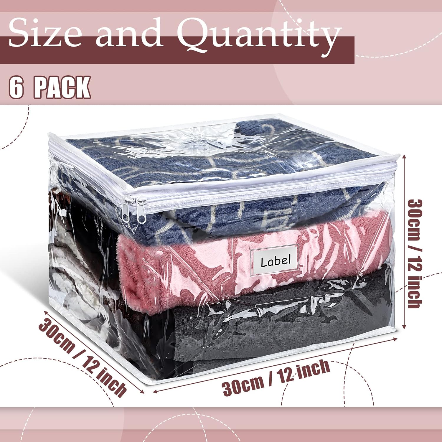 Hoolerry 6 Pieces Sweater Storage Bags Plastic Clear PVC Clothes Storage Bags with Zipper and Label for Blankets Clothes Closet Quilt Pillow Bed Sheet Organizer(12 x 12 x 12 Inch)