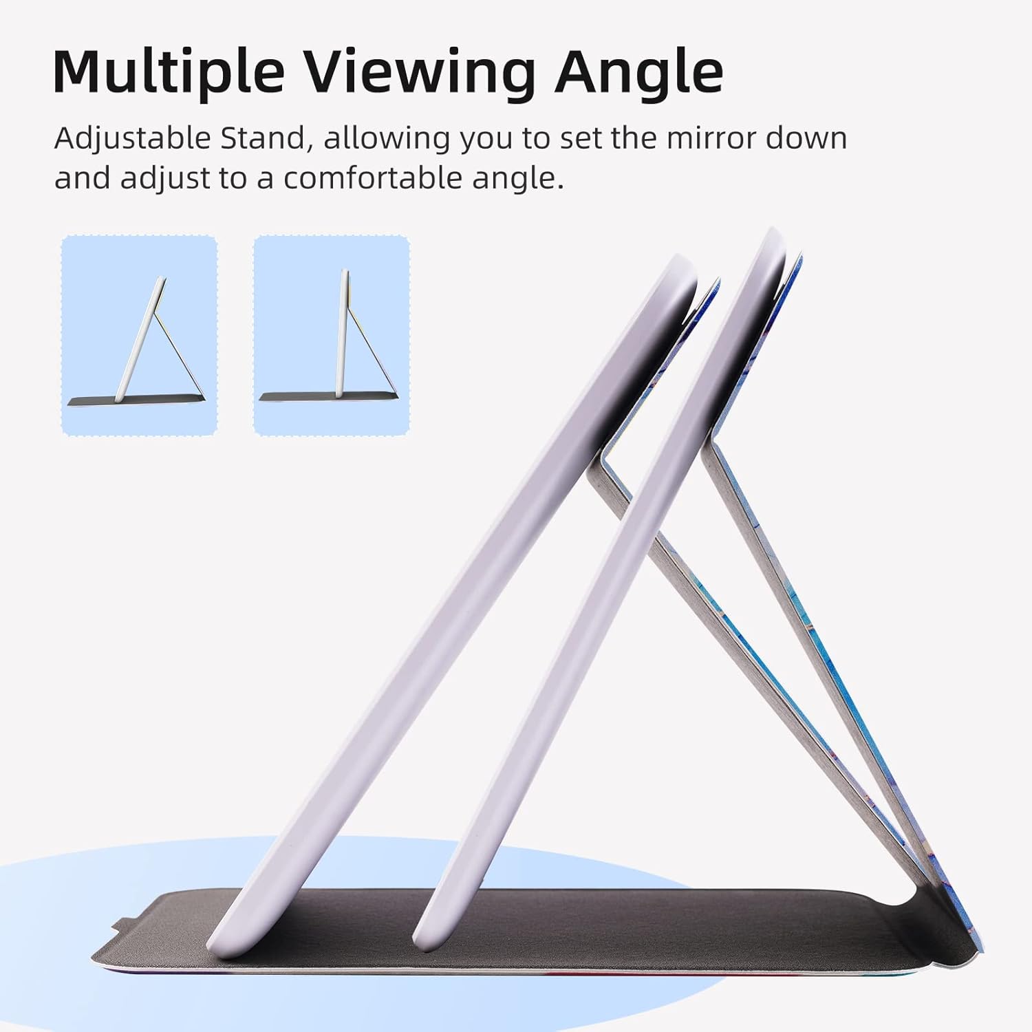 - ๐ฉ๏ธ๐๐จ๐ซ๐ญ๐๐๐ฅ๐ ๐๐ซ๐๐ฏ๐๐ฅ ๐๐๐ค๐๐ฎ๐ฉ ๐๐ข๐ซ๐ซ๐จ๐ซ:This makeup vanity mirror in ipad mini size with lights in folding design.The slim, lightweight,compact design with a Leather protection makes the Eclipse your new travel buddy.It is easy to put this travel mirror into your cosmetic bag without any broken worries,you can take it everywhere for makeup conveniently.And have sturdy standing, can stand stable on the table or any flat surface