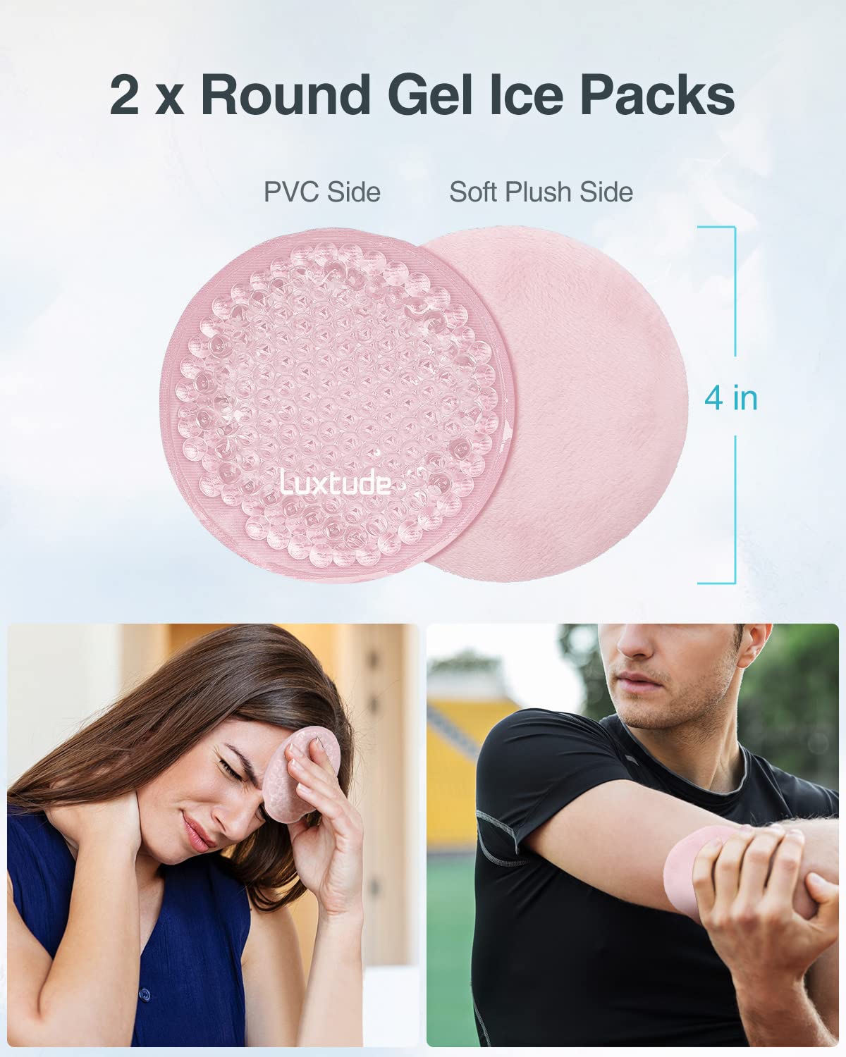 - ❤ 2 Round Gel Packs: Included with 2 small ice packs for pain relief of any body part, they can be used to soothe sore muscles or puffiness, relax tense muscles, help get relief from a stiff neck, headache, fever or tooth pain.