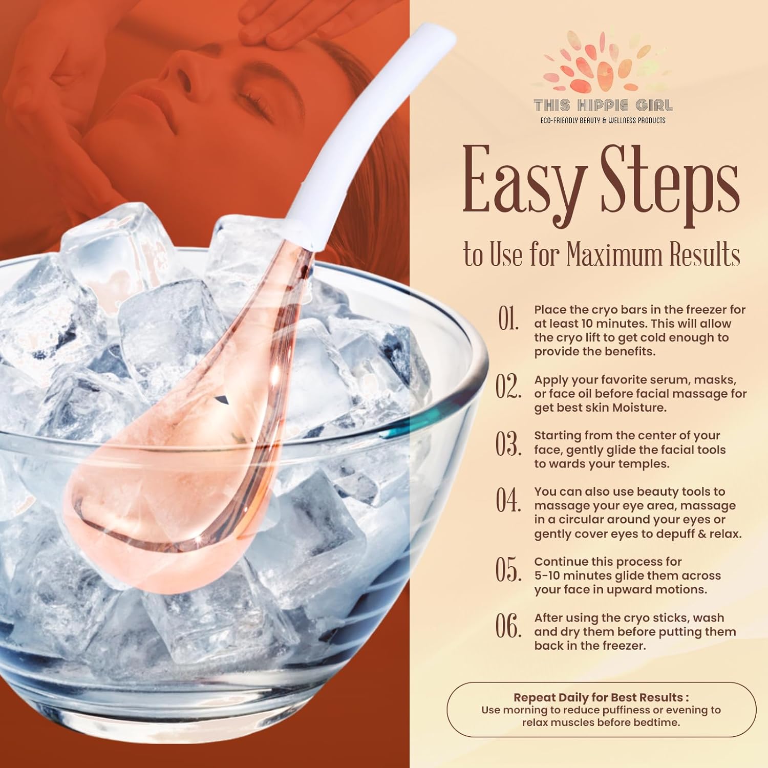 Ice Globes Facial Skin Care Tools for Women, Cryo Sticks for facials, Rose Gold Cold Therapy, Stainless Steel Cryo Wands, Soothe and DePuff Cold Bars for Face and Eyes, Facial Tools