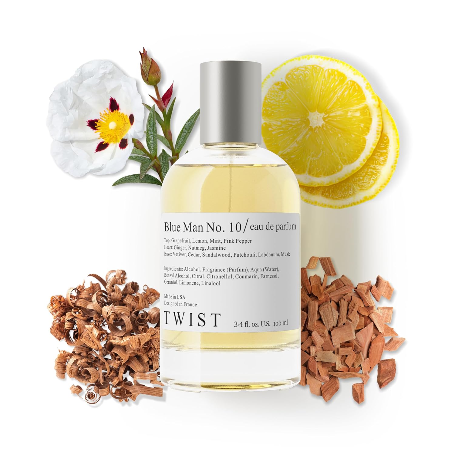 Twist Blue Man No. 10 - Eau De Parfum Inspired by Chan. Bleu, Long-Lasting Perfume For Men, Citrus & Wood, Vegan, Clean Ingredients, Fragrance - Spray 100 ml | 3.4 fl. oz.