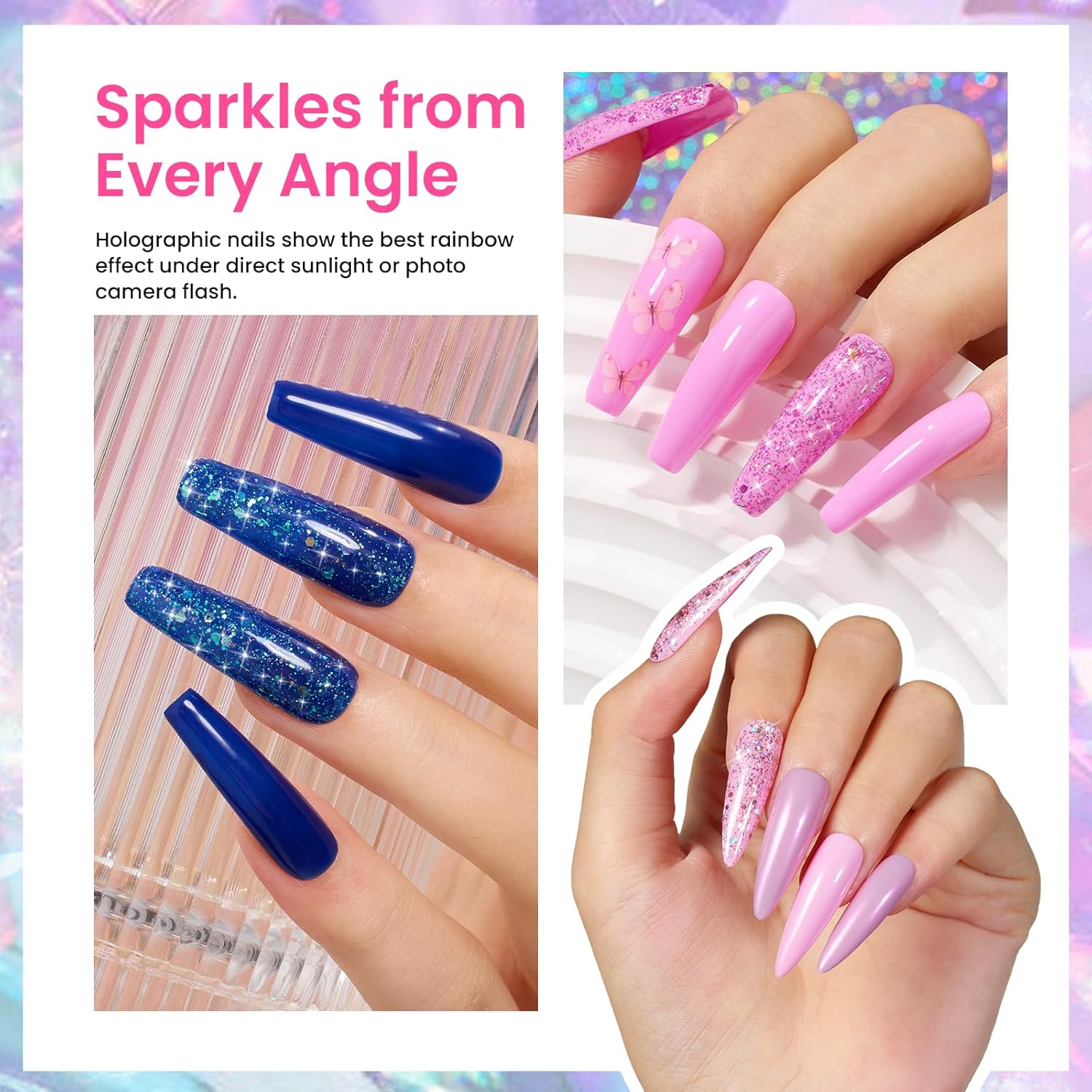- 【Soak off LED Gel Nail Polish 】Holographic gel polish needs to be cured under LED nail lamp. Base and Top coat required. Average for LED light 60-120 secs, nail dryer 2-4 mins.