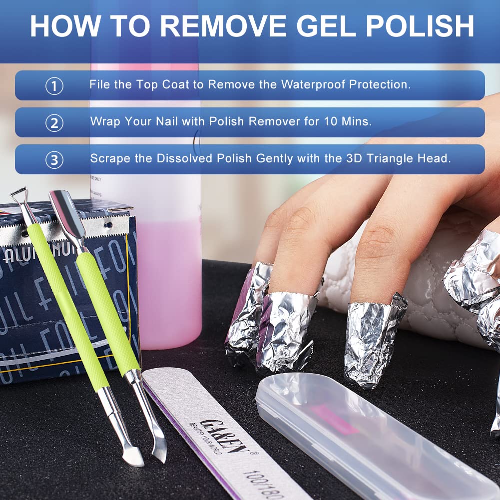 - MULTIFUNCTION PACKAGE: The Cuticle Cleaning and Removal Set consists of 2 pieces of Nail Art Tools with 4 types of functional heads, which can be together used to push back the cuticle, scrape the softened Gel Polish and remove the residue or hangnails.