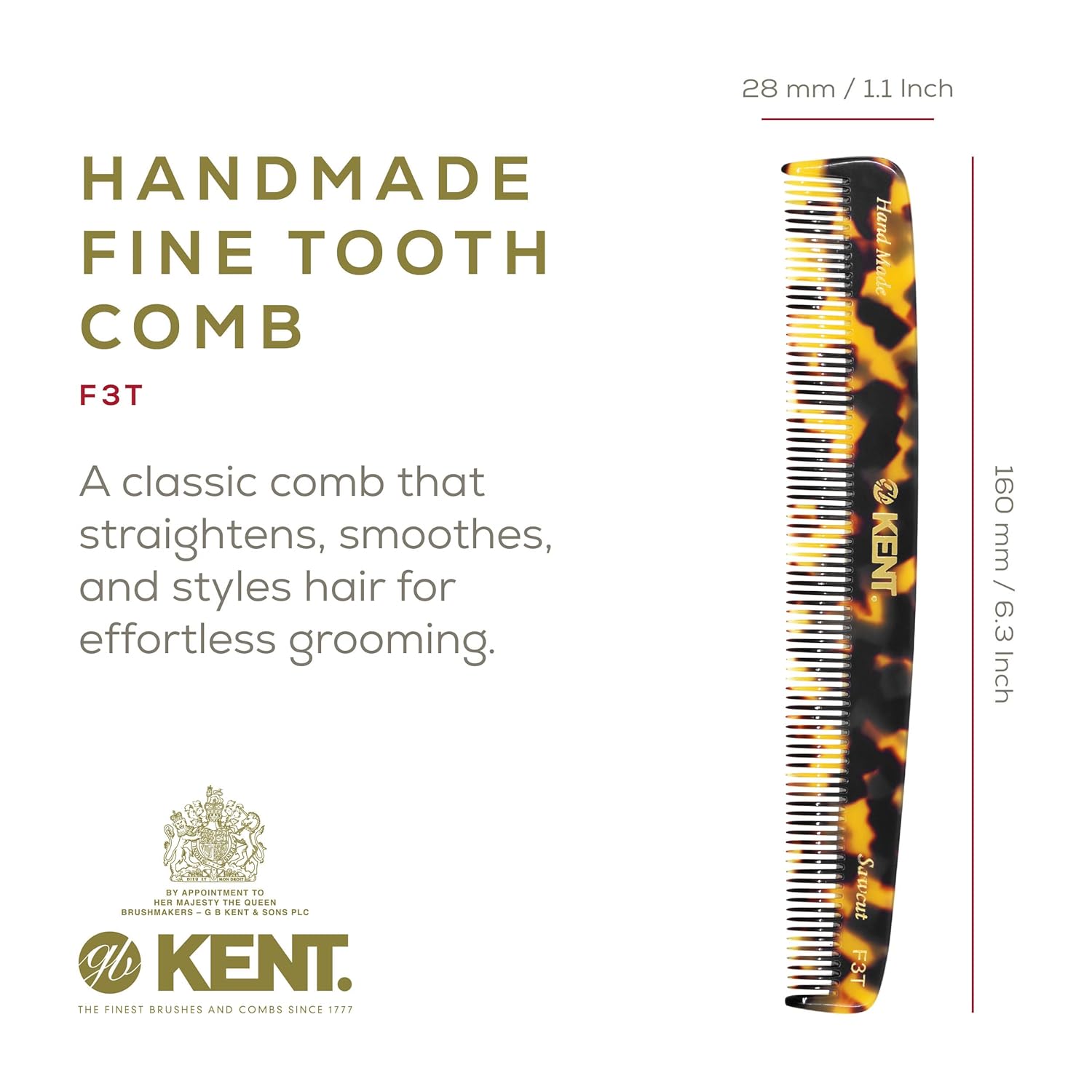 Kent F3T TY Fine Tooth Comb - Hair Parting and Straightening Comb for Men's & Women's Dandruff Remover, Saw Cut and Hand Polished Made in England