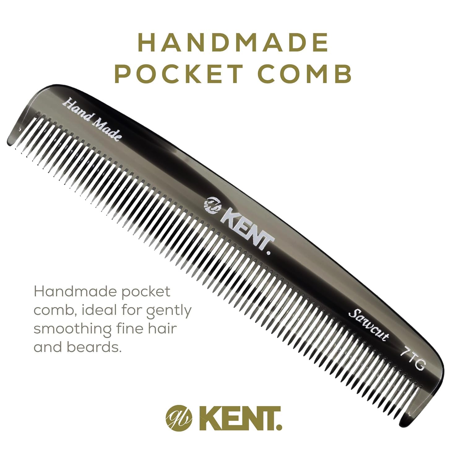 Kent 7T G All Fine Tooth Pocket Comb-Handmade Hair Comb for Grooming and Styling-Travel Comb for Hair Care,Mustache and Beard Care, Use Dry or with Balms, Saw Cut and Hand Polished for Wet or Dry Hair