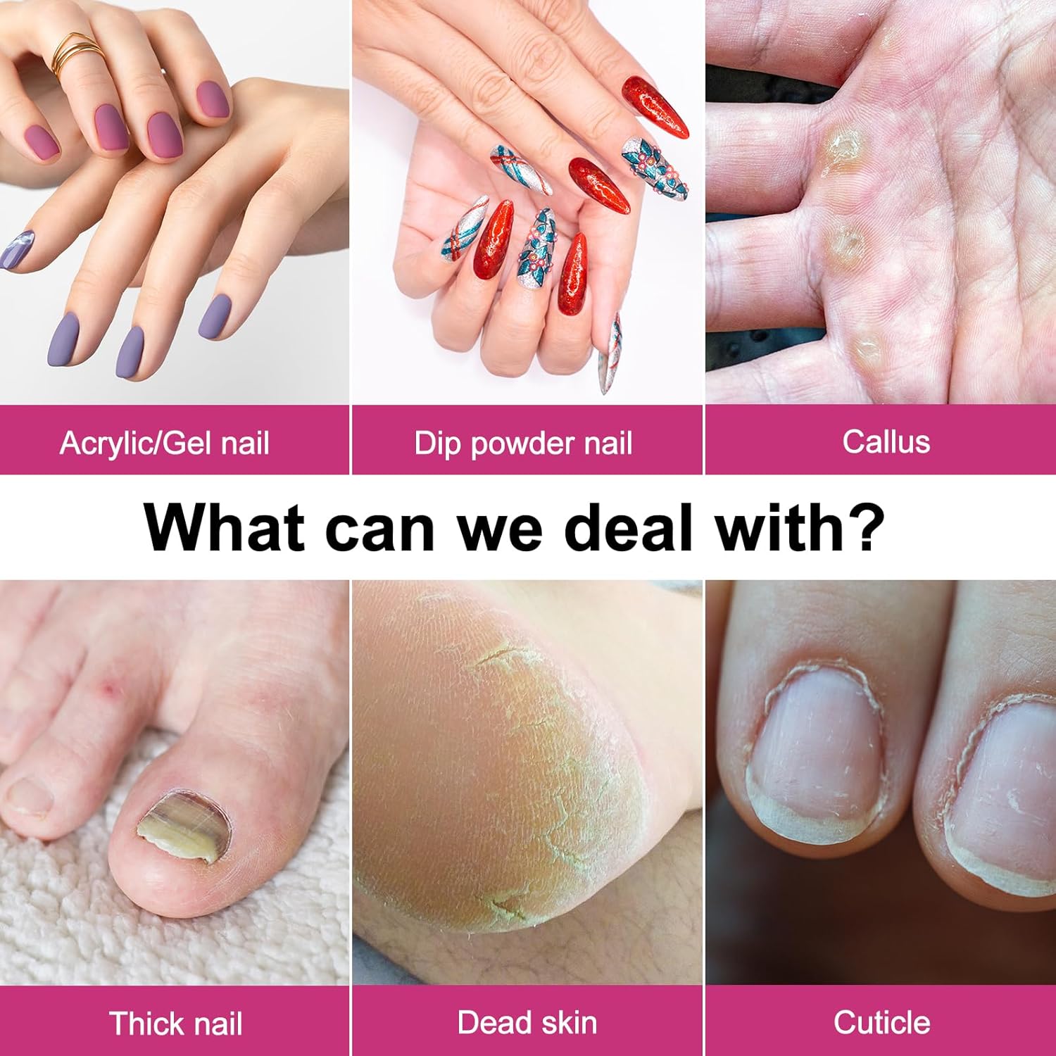 - Multifunctional for Manicure & Pedicure: With adjustable speeds and forward/reverse direction options, this nail drill machine comes with various professional grinder bits, you can customize your various manicure and pedicure routine to your liking
