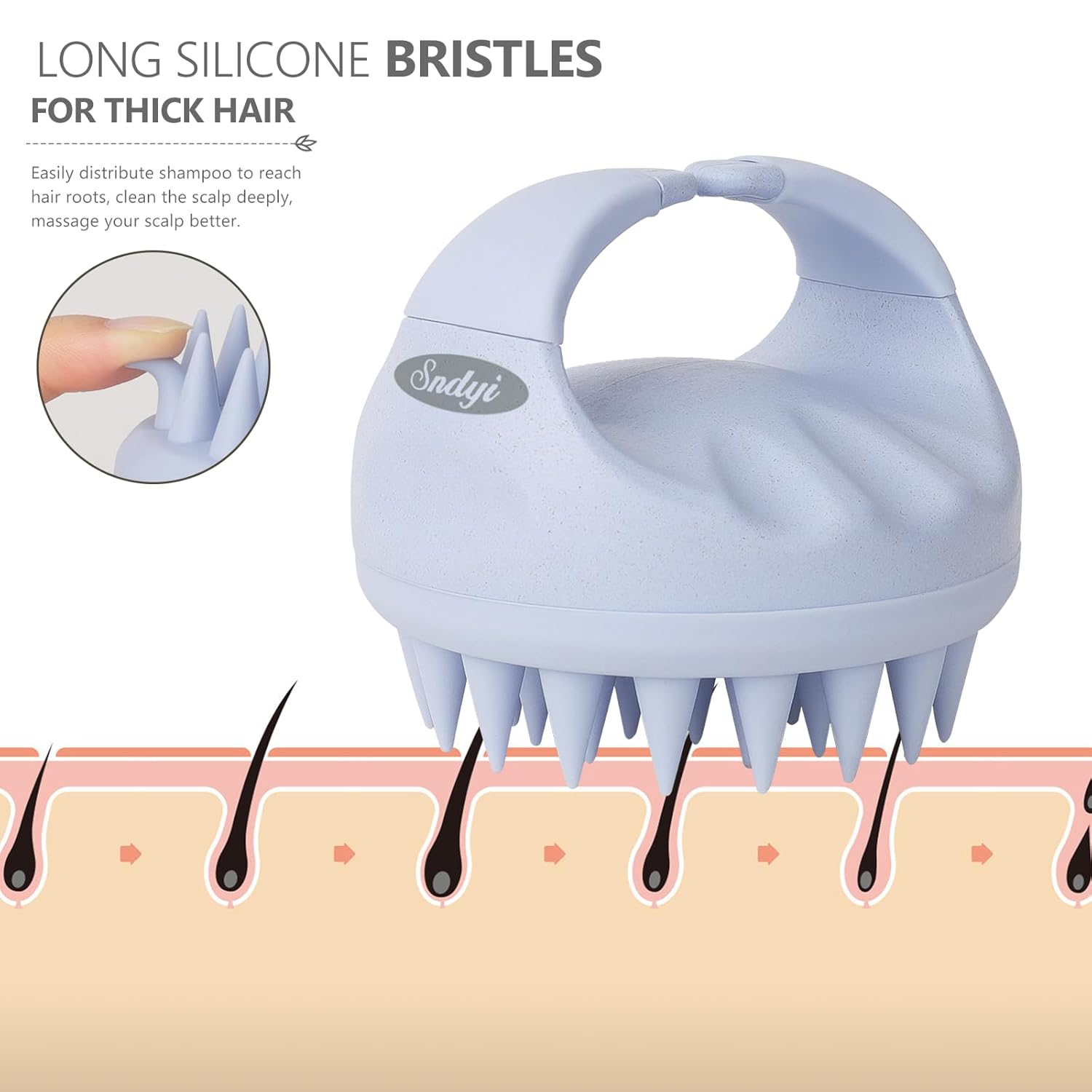 Sndyi Scalp Massager Shampoo Brush, Scalp Scrubber with Soft Silicone Bristles, Scalp Exfoliator for Dandruff Removal, Scalp Massager for Hair Growth, Wet Dry Hair Brush for Scalp Care, Sky Blue