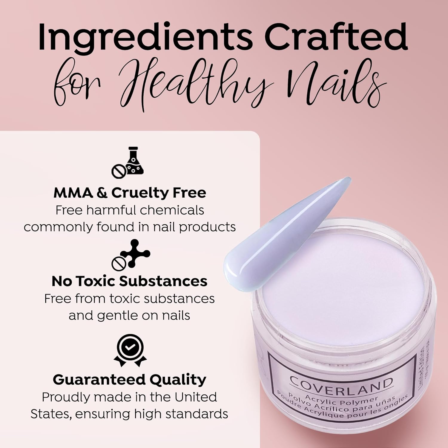 - CAMOUFLAGE IMPERFECTIONS: Coverland Polymers cover the nail bed with highly saturated skin tones and colors, helping to improve aesthetic appearance and hide imperfections. This specially formulated solution ensures a smooth, even application, allowing you to create flawless nail art with ease