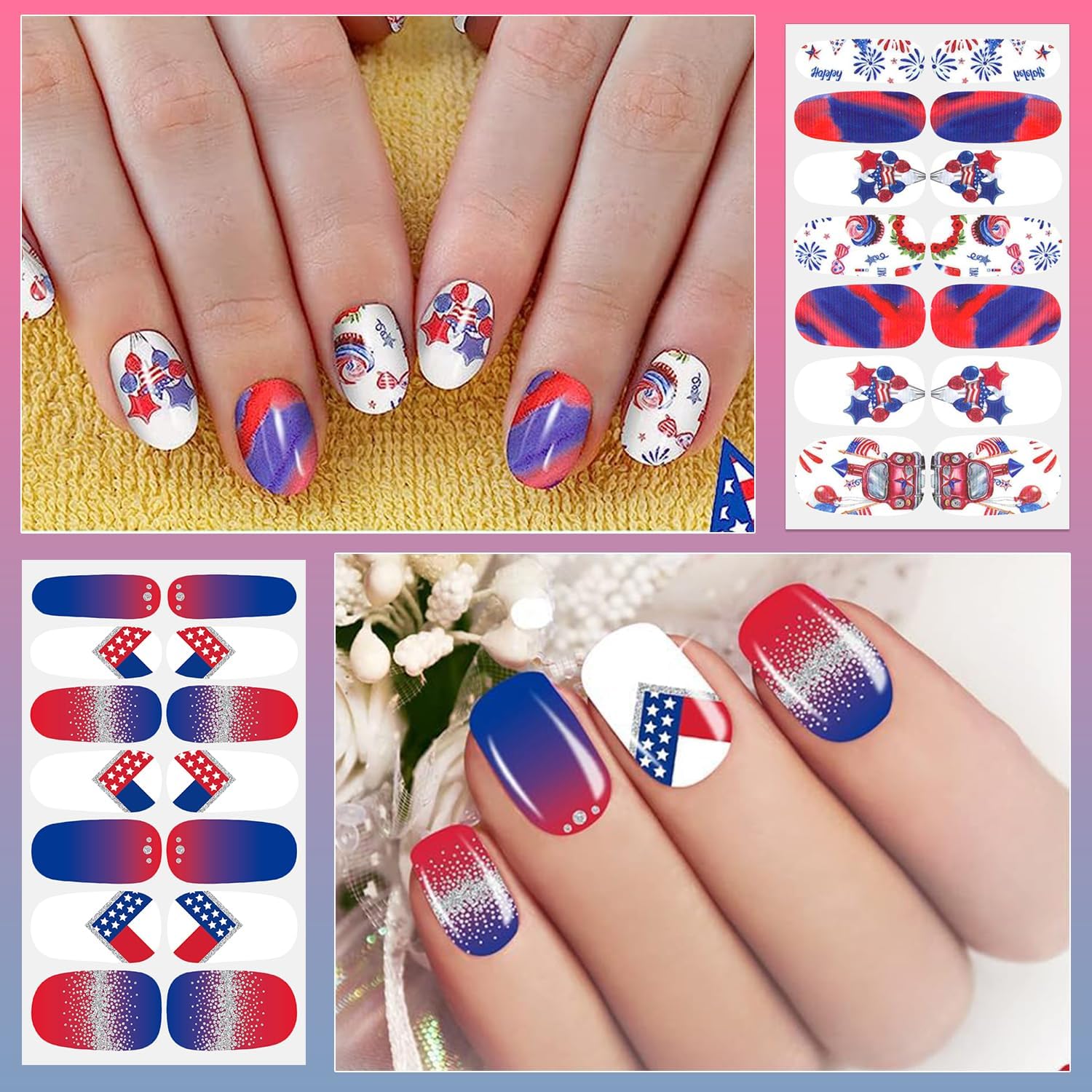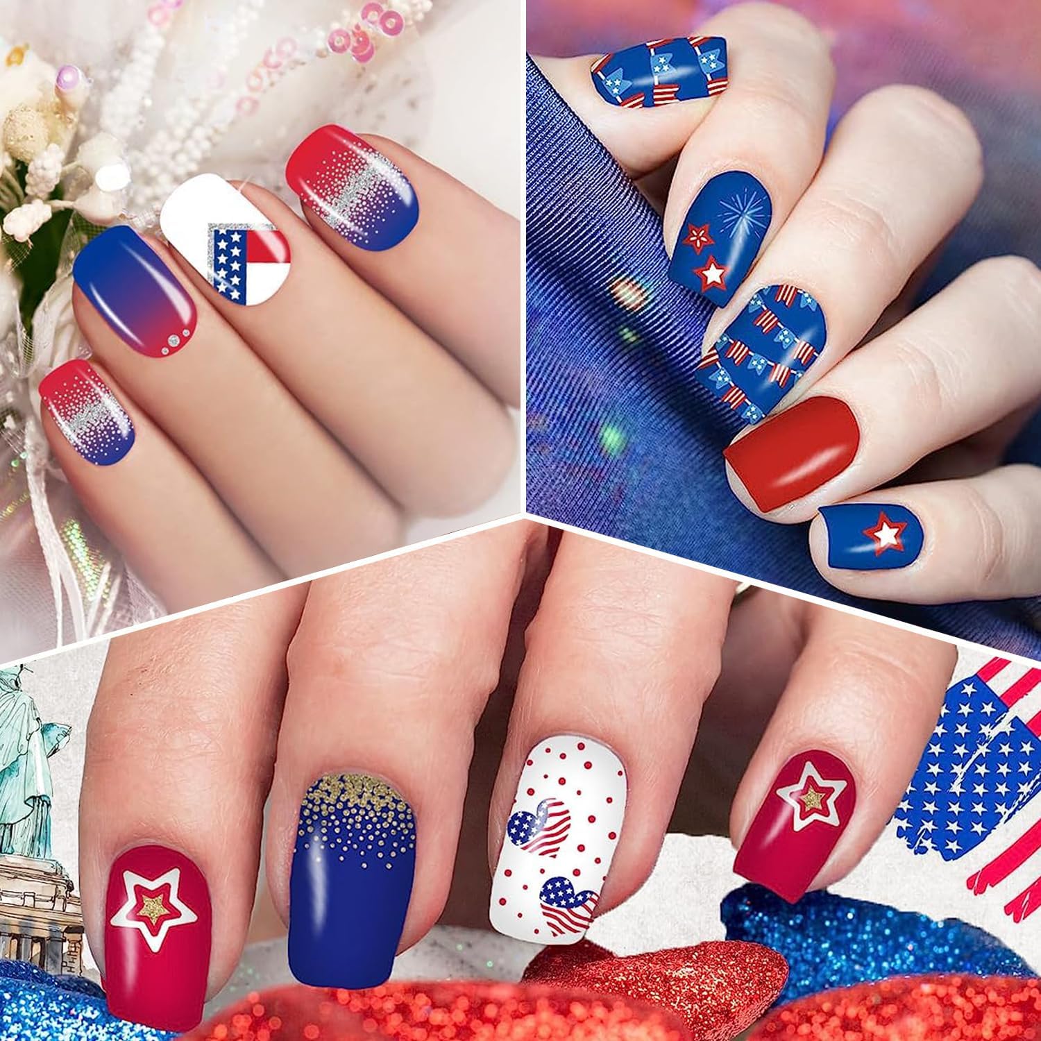 - [Quality & Durable] Our 4th of July nail polish sticker made of quality material, safe and odorless, bringing no hurt to your nails, also the full nail strips is durable, not easy to bubble and DON'T REQUIRED UV LIGHT.